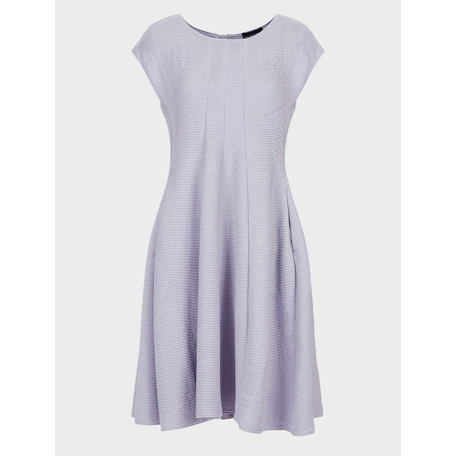 Round neckline. Cap sleeves. Pleated design. Flared.