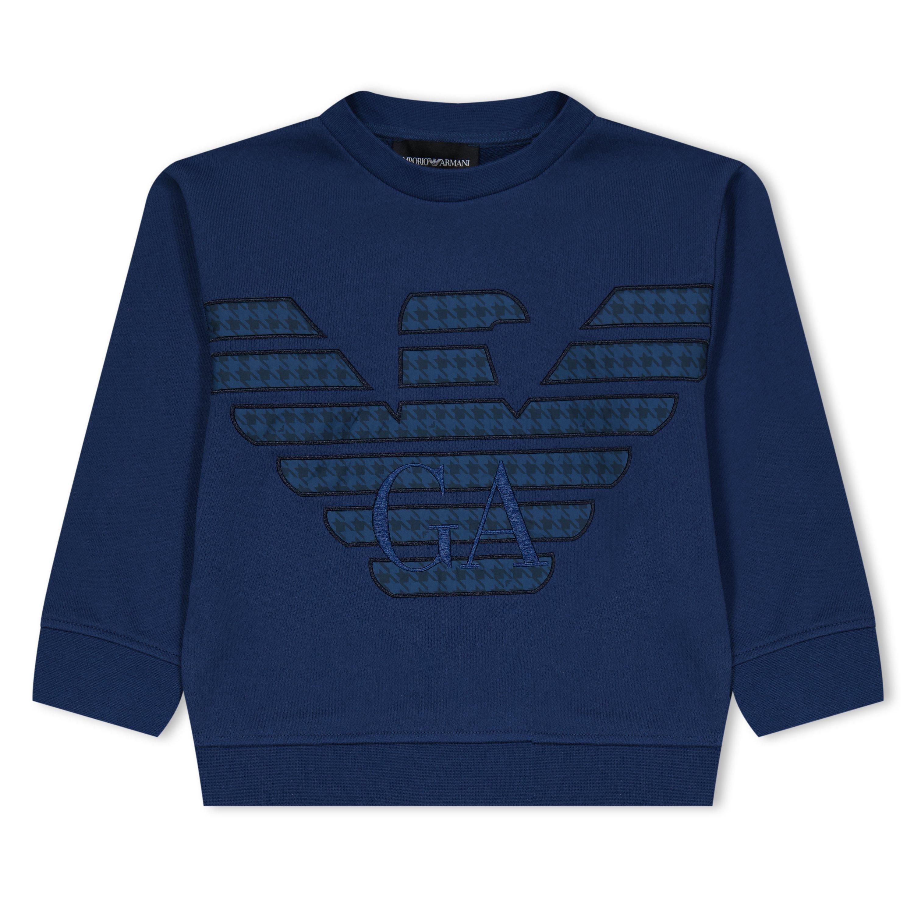 Elevate your youngster's weekend staples with Emporio Armani's Eagle Logo Crew Sweater. Cut with dropped shoulders for a slouchy, comfortable fit, this child's pullover is ideal for days out with the family or sleepovers at a friend's house.