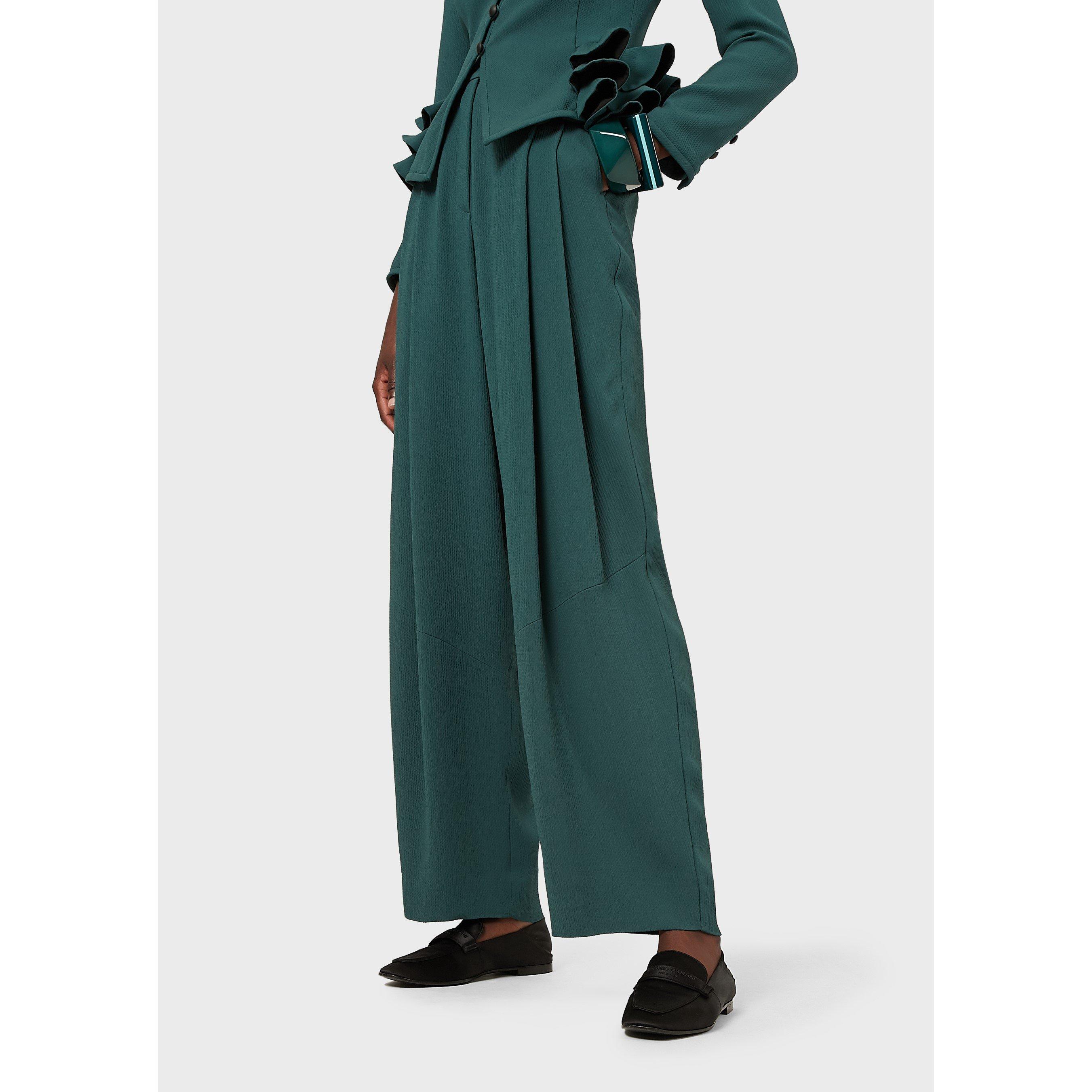 Emporio Armani's woman's Wide Leg Trousers offer a striking cut with contemporary style. The fluid drape creates a graceful movement while maintaining a sharp tailored finish that epitomises the brand's distinct aesthetic.
