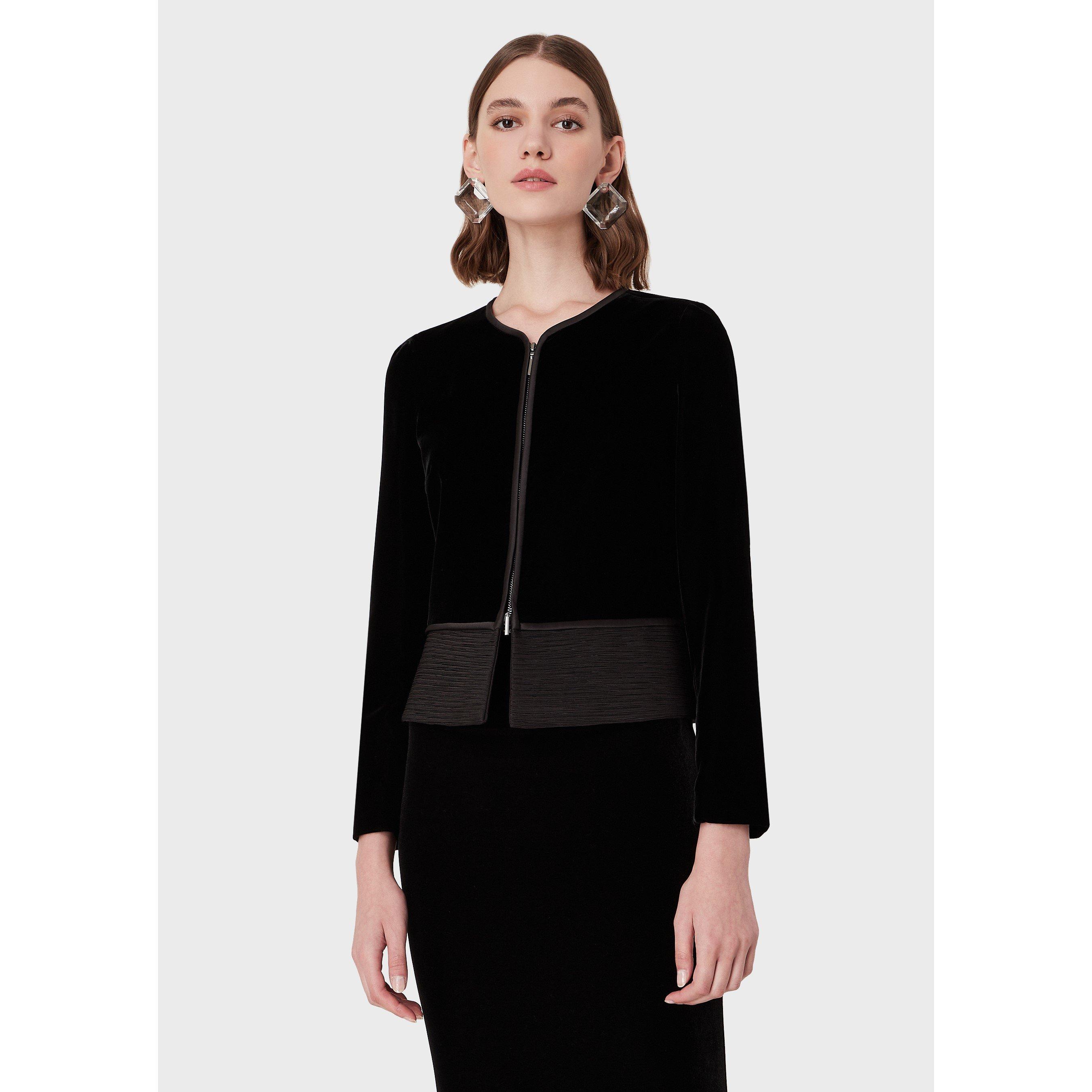 Update your wardrobe with the Emporio Armani Women's Zipped Blazer. This cropped jacket delivers sharp tailoring with a striking front zip, offering a modern take on structured dressing.