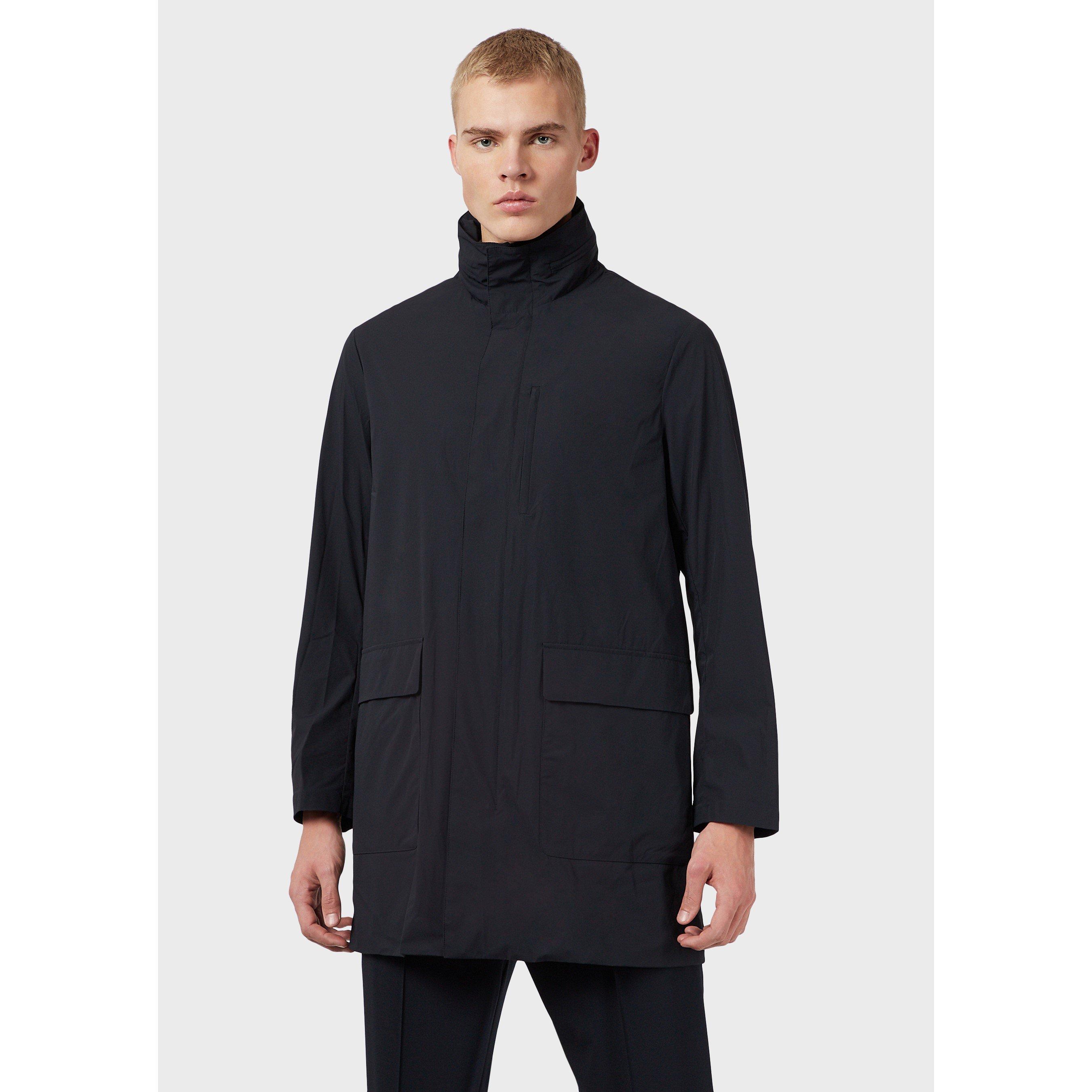 Emporio Armani's Men's Waterproof Rain Anorak offers technical protection with minimal styling. The streamlined waterproof jacket design shields against unpredictable weather while maintaining the brand's aesthetic through clean lines and thoughtful detailing.