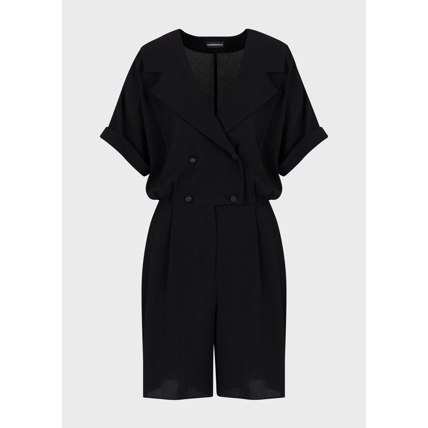 Notched lapels. Short sleeves. Double-breasted button fastening. Elasticated waistband. Straight leg. Above-knee length.