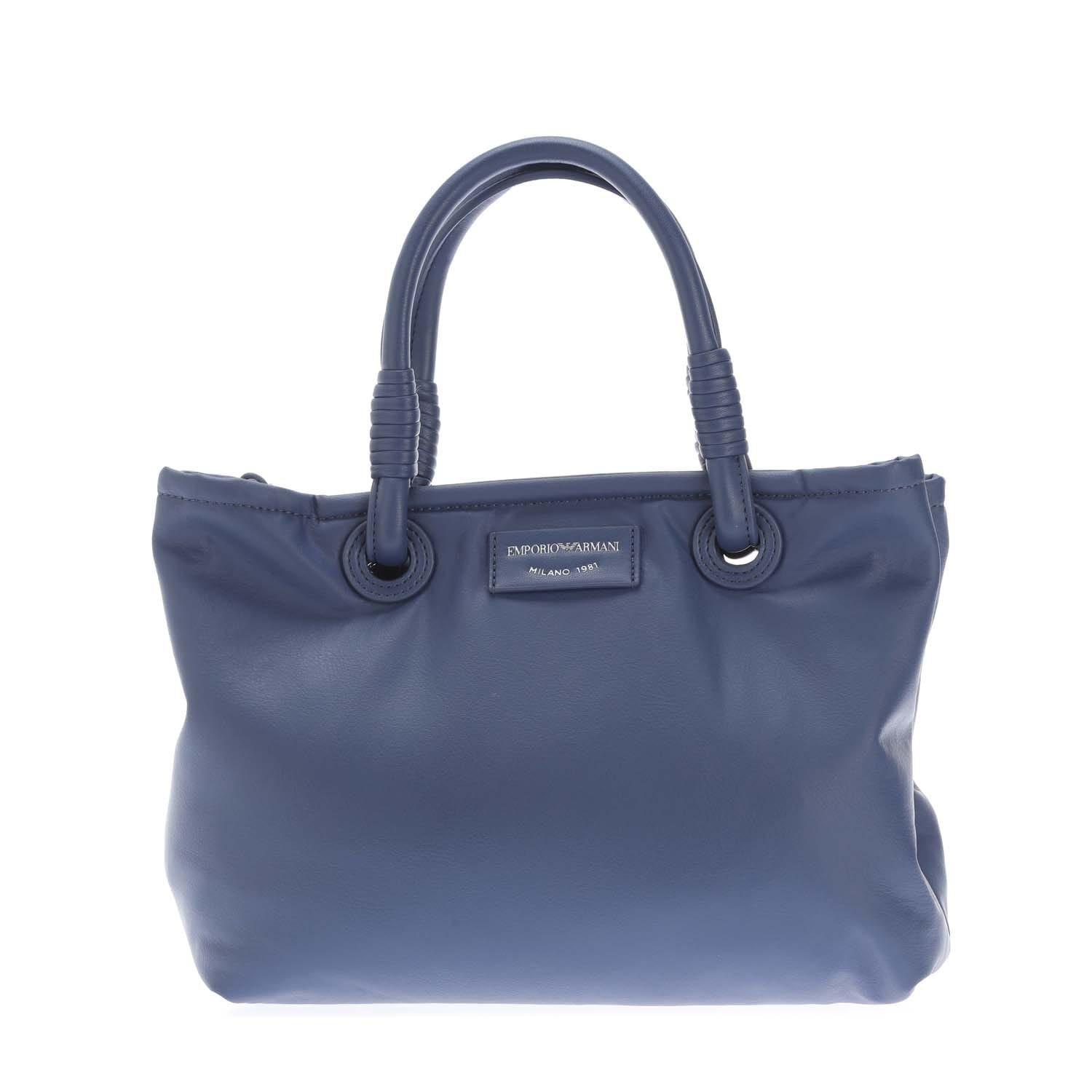 Top handles. Three main compartments. Small rectangular plaque on the front.