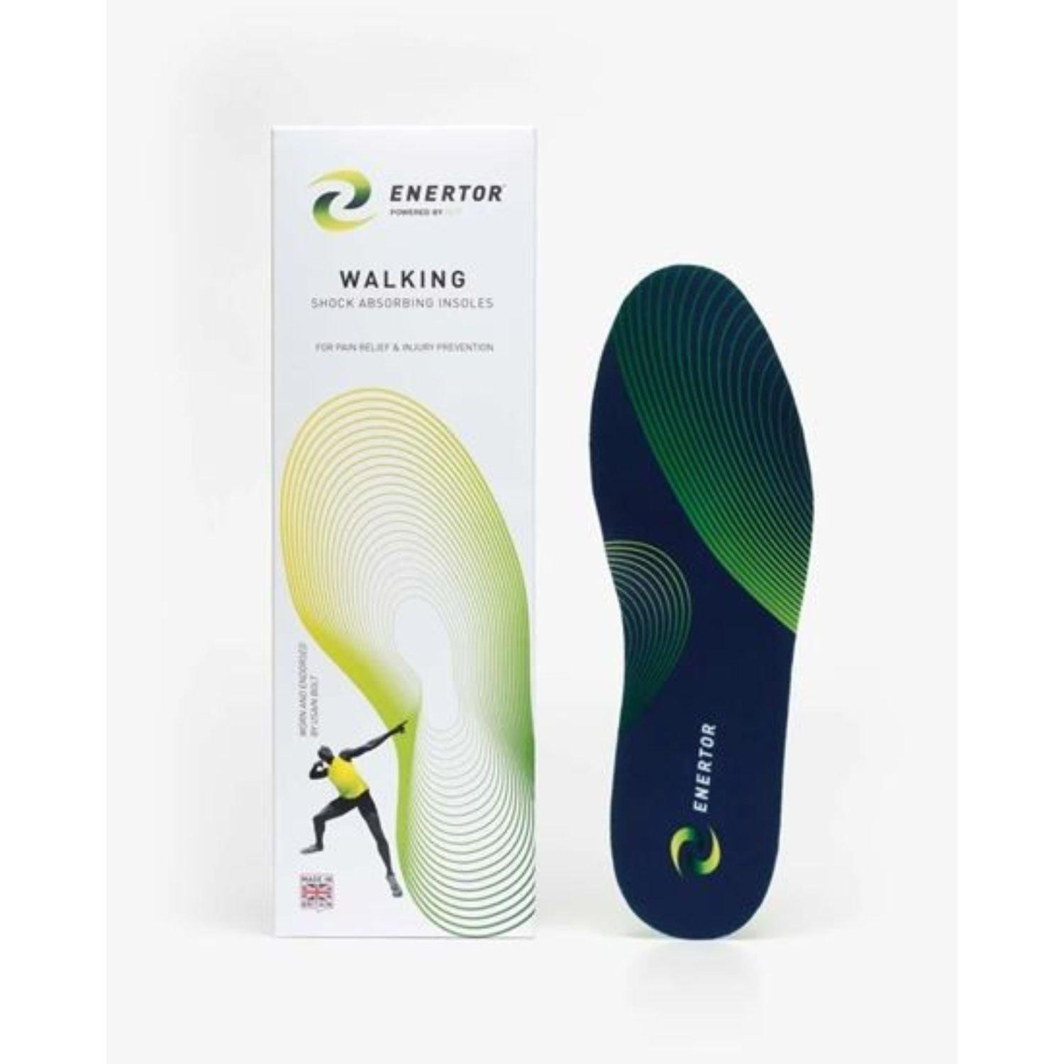 Enertor Walking insoles utilise our ground-breaking PX1 technology to: Prevent and relieve injuries - Absorbs 51% of the force of each foot strike, relieving pain and decreasing the risk of injury Enhance energy return - Reduces fatigue enabling walkers to walk longer distances more easily. Boost cushioning - Enhances comfort and muscle recovery.