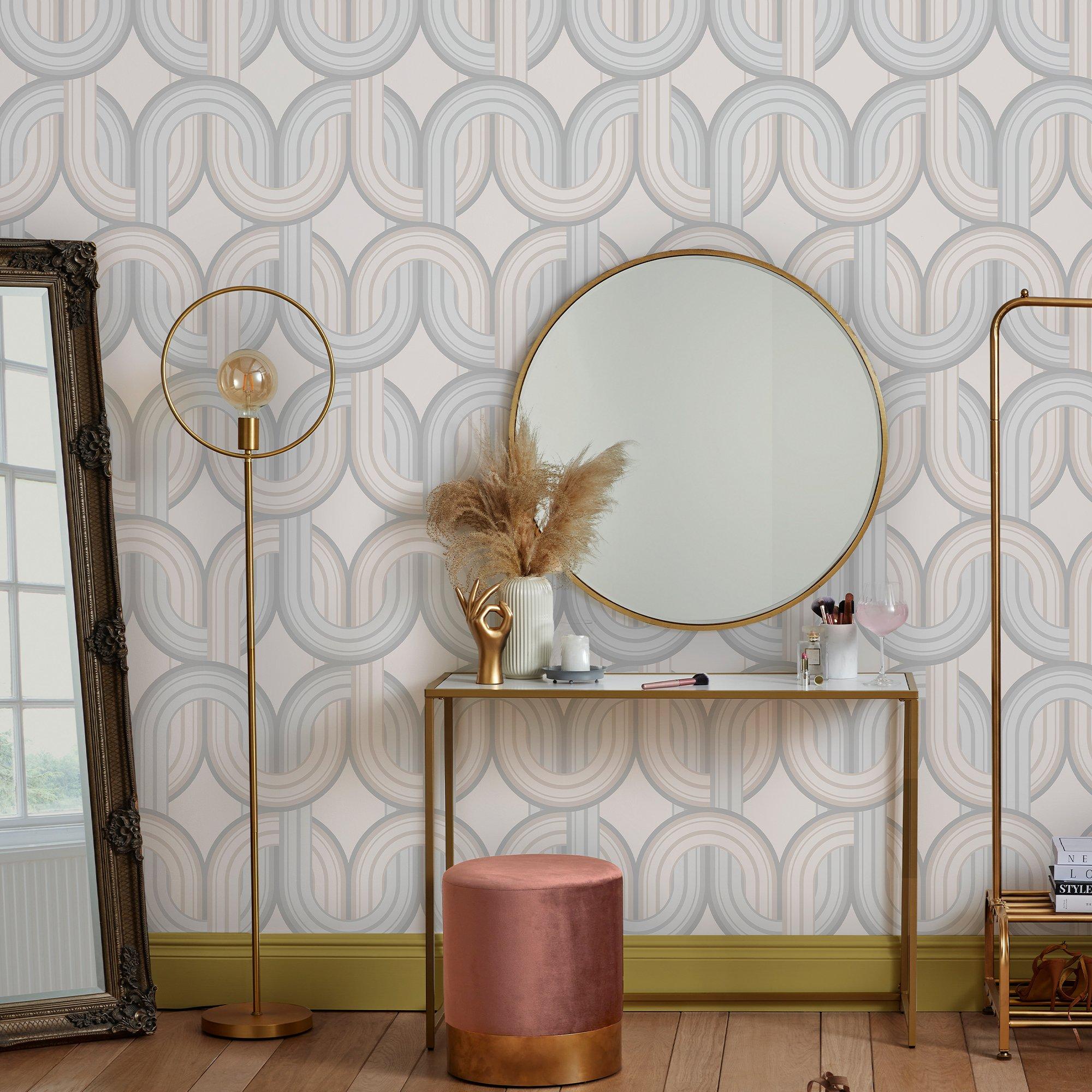 For a large scale geometric that packs a punch, look to our In the Loop design inspired by retro Mid Century Modern design. With a delicate colourway of soft neutrals, this design adds subtle texture to any interior. All of our wallpapers are paste the wall meaning they are far easier and quicker to hang and remove ! Application Method: Quick & easy 'Paste The Wall' application (no decorating table or pre-cutting required) Removal: Strippable - No wallpaper steamer or scraping required. Paste the wall wallpaper can simply be peeled off in strips Design style: Geometric Design match: Straight Roll size: 10m X 52cm Eco Friendly 1 roll usually does 3 drops on the wall depending on ceiling height, pattern match and wastage. Same batch guarantee when purchasing multiple rolls at once. Please note the colours on screen may vary from the actual product. Full instructions for hanging are supplied with each item