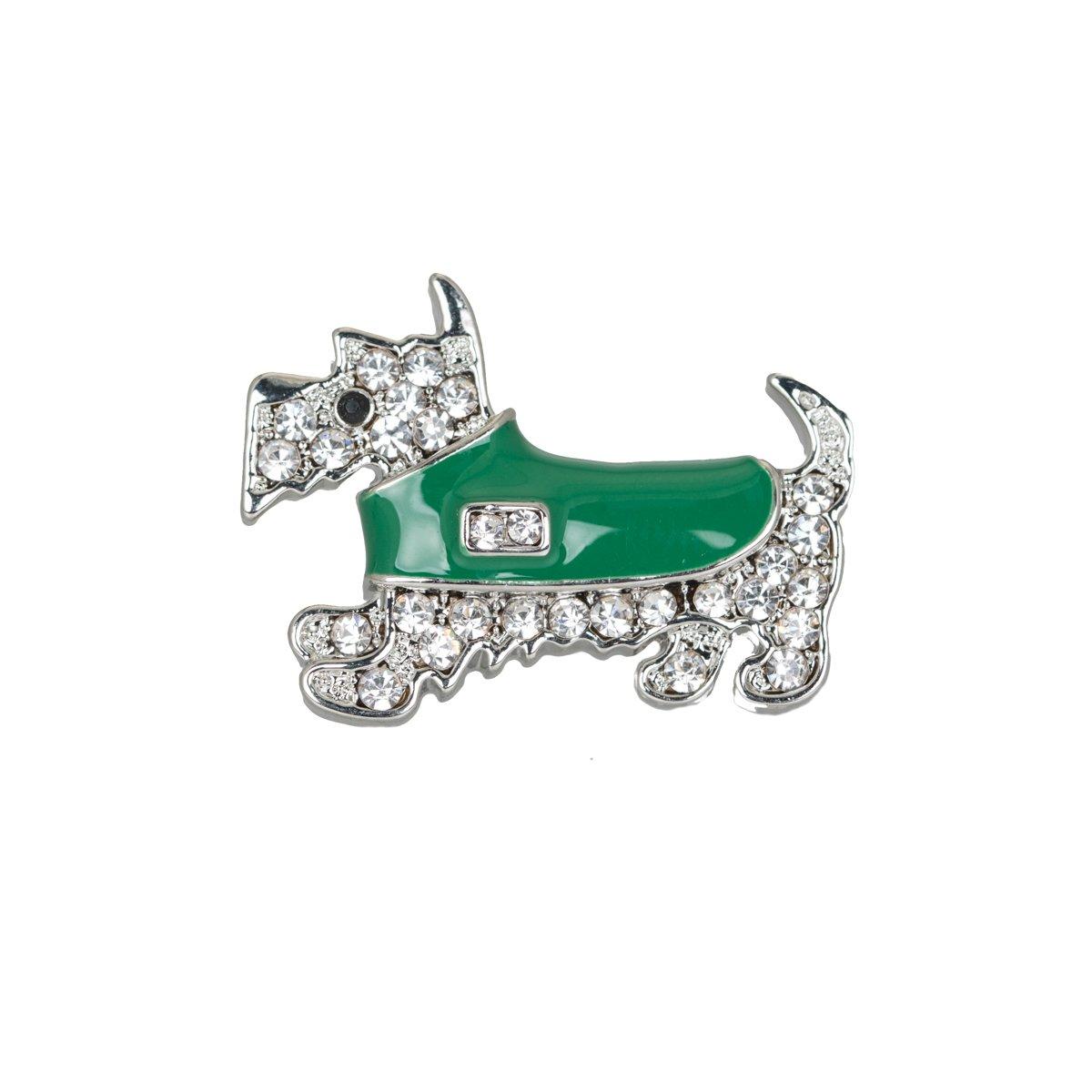 2044 Espree fashion Rhodium Green Enamel Scottie Dog Brooch Supplied in gauze and gift bag
