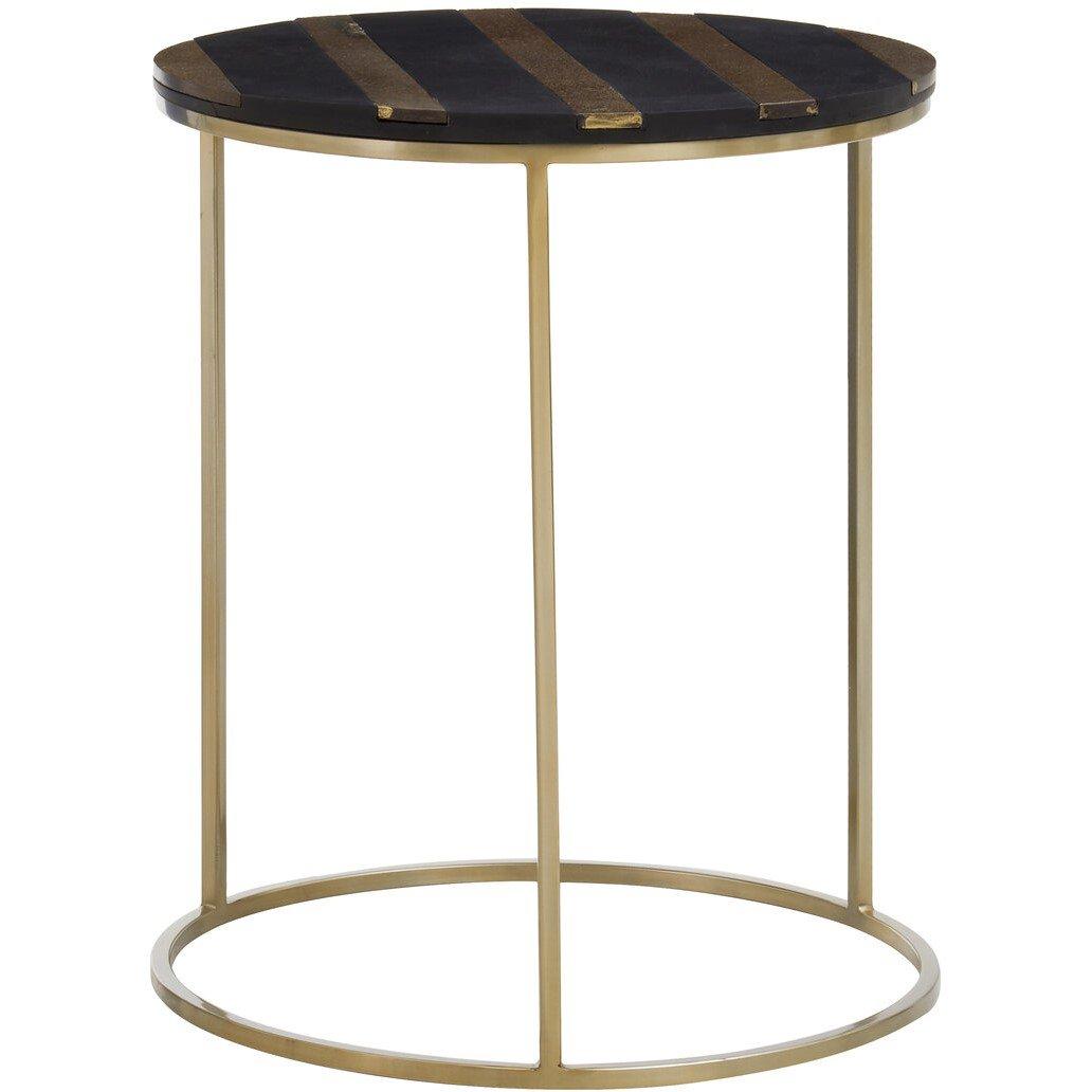 This side table is constructed from acacia wood with black and gold finished stripes adorning the top. The tabletop is supported by a sleek frame bringing an element of minimalism to the design.