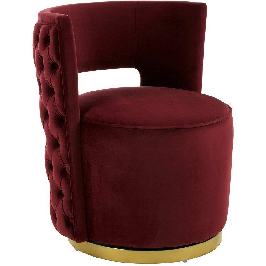 Inspired by classic cocktail seating, the Bola chair is covered with tactile velvet with a contemporary wine finish. The gold coloured stainless steel base has a brushed design for a subtly textured finish.