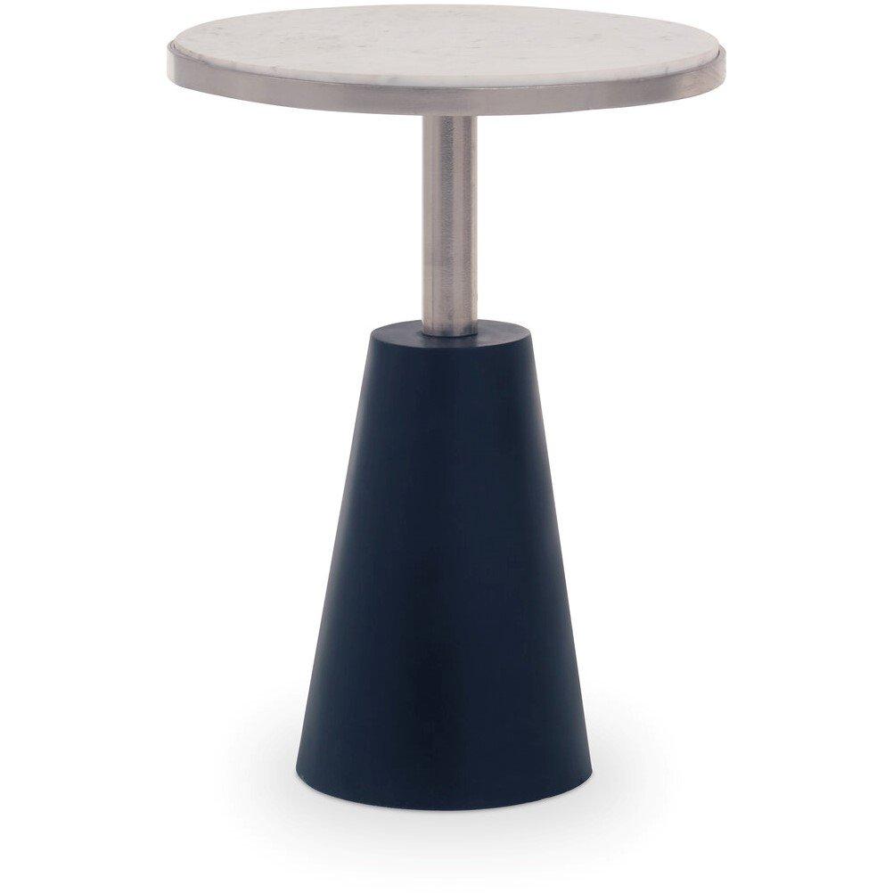 The Templar side table will bring depth and texture to the decor with its chic design. Boasting timeless grace, this side table features an ideal composition of a round white marble top neatly adjusted on a thin column attached to a black conical base.