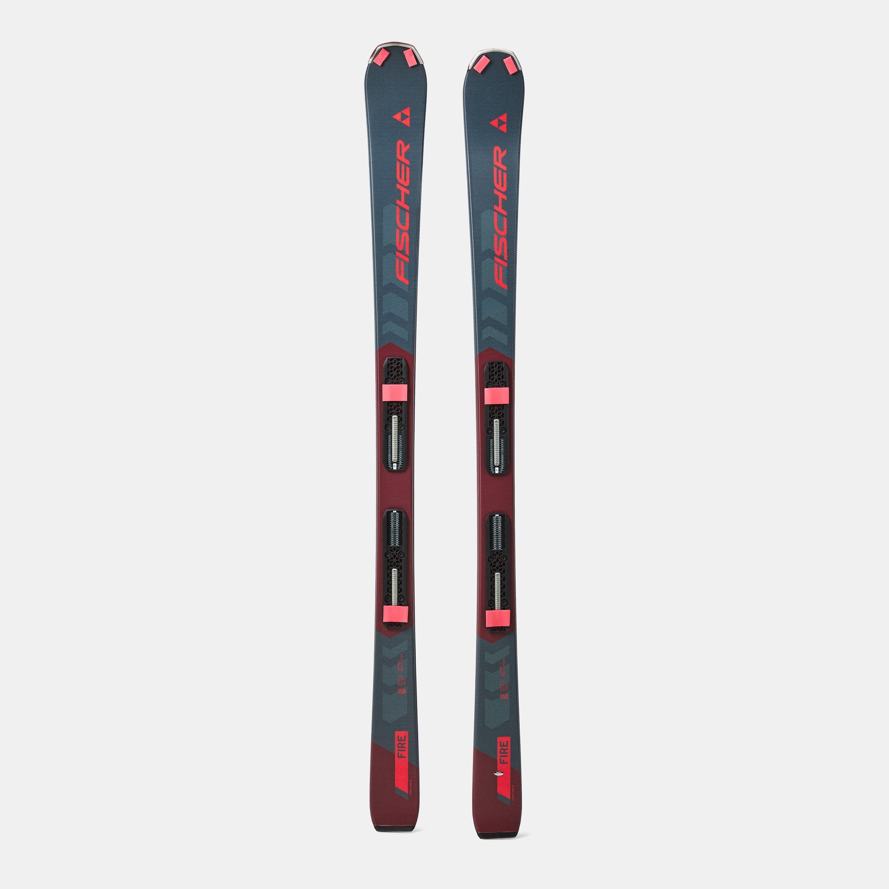 Fischer's Fire Skis pair precision with power on challenging terrain, balancing responsive control with stability. This high-performance gear features a sleek profile that ensures confident movement across varied terrain in diverse winter snow conditions.