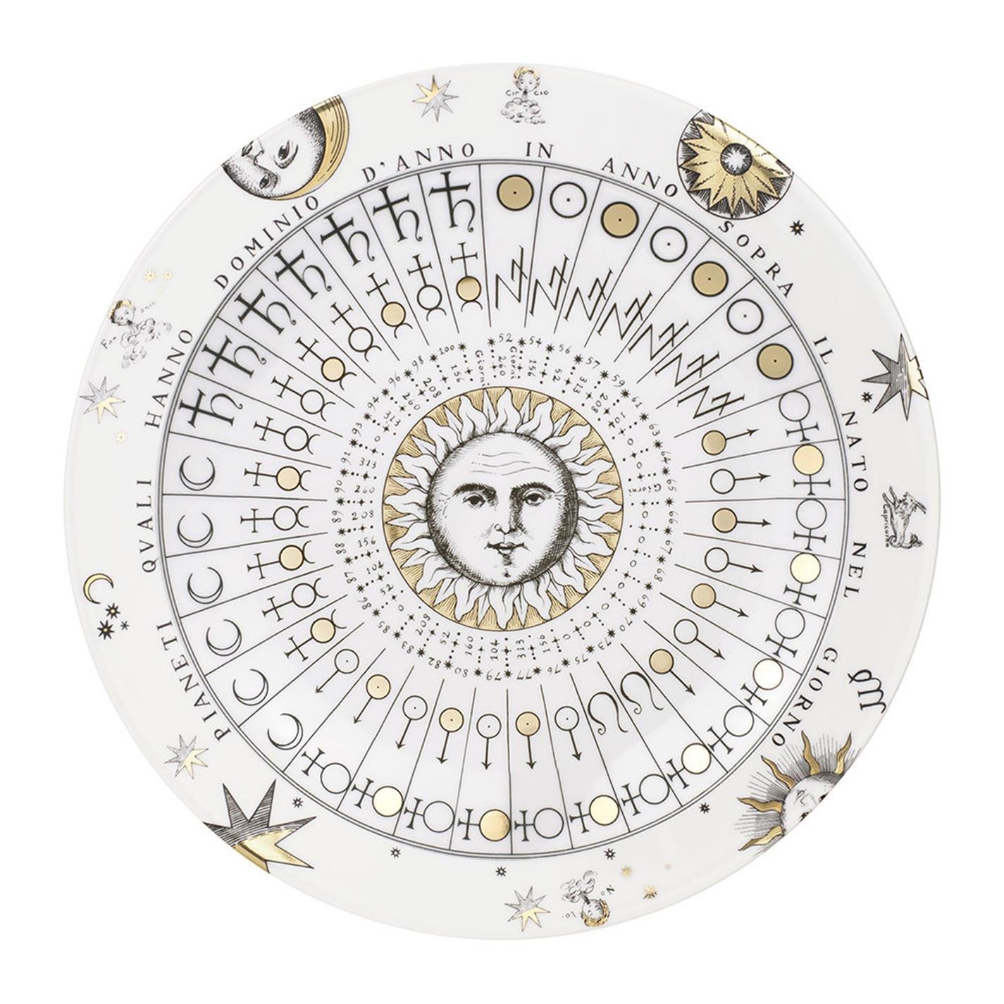 Crafted from crisp white porcelain and intricately hand-decorated, the Astronomici plate from Fornasetti will bring a touch of elegance and intrigue to any wall. Harnessing an astrological design with gold accents, this piece will make a perfect housewarming gift, or you collect and combine to create a real focal point.