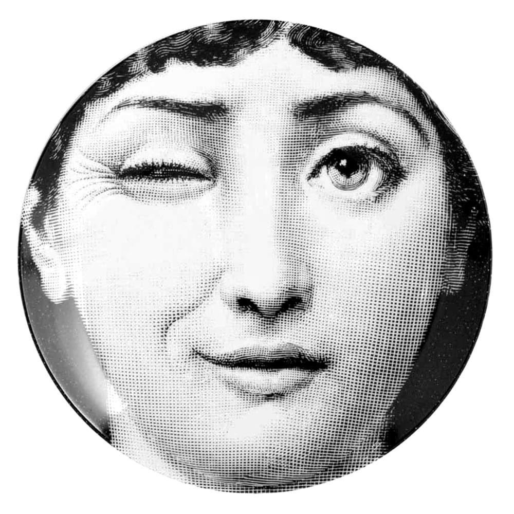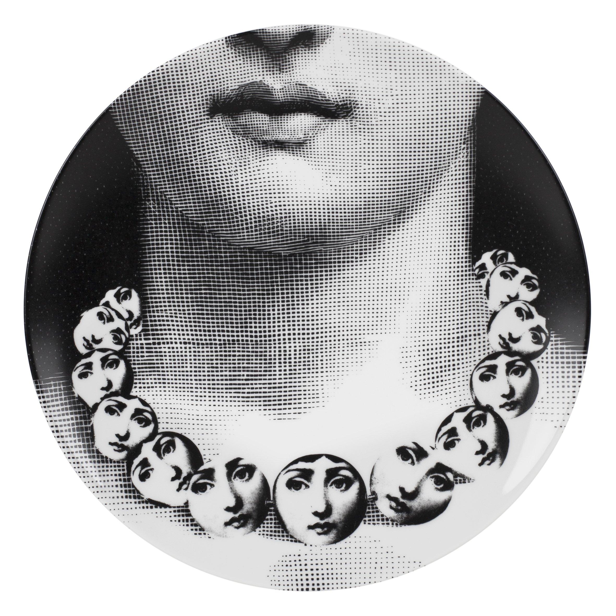Adorn your interior walls in ultimate luxury with this stunning, handcrafted Tema e Variazioni porcelain wall plate from Fornasetti. This indulgent plate features the gorgeous face of Piero Fornasetti's favourite subject, opera singer Lina Cavalieri, in contrasting tones. A perfect decorative piece to complement any room, this iconic design is an ideal gift idea for any collector, or addition to your own home.