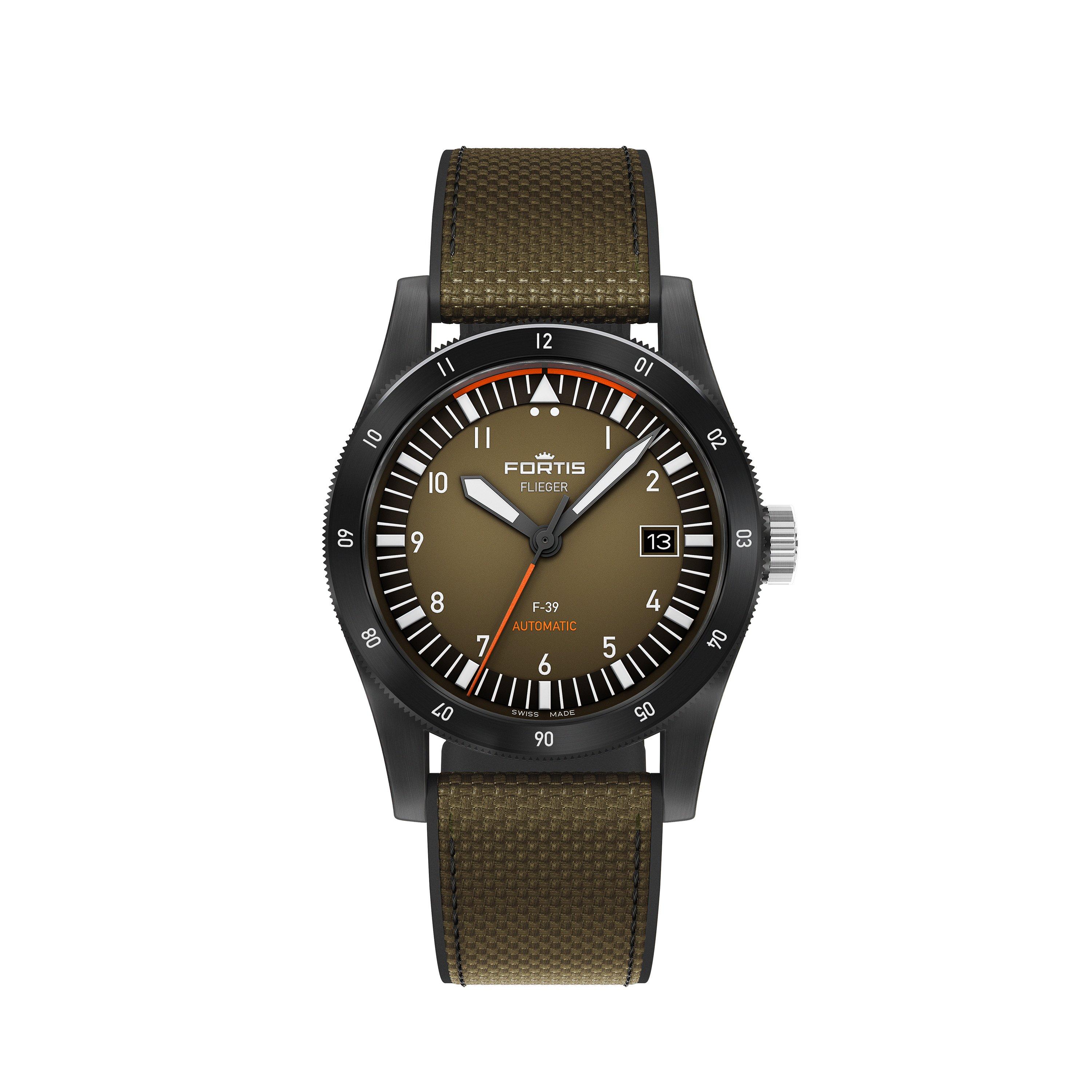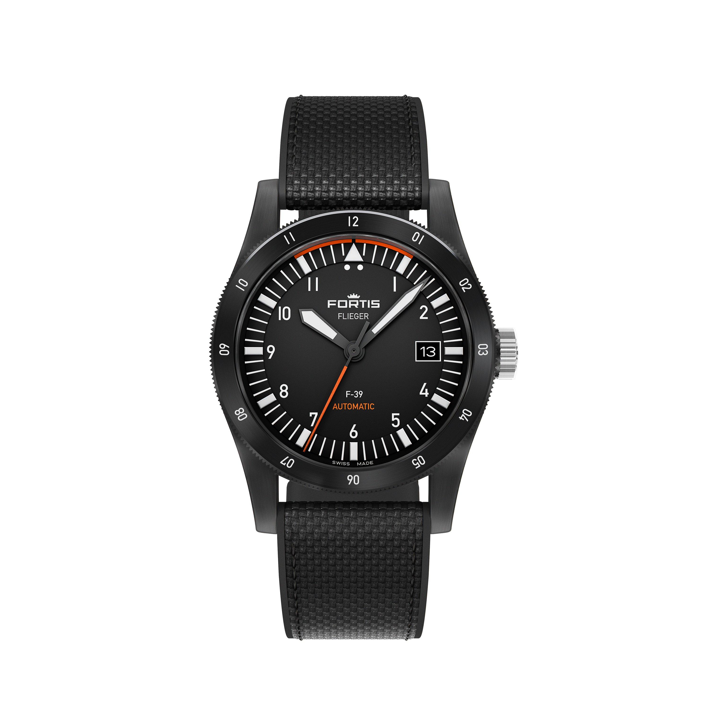The Fortis Flieger Swiss Automatic merges over 40 years of aviation heritage with precision engineering. Featuring Diamond-Like-Carbon coating on stainless steel and a robust Werk 7 movement, this limited edition wristwatch delivers high performance with water resistance to 200 metres.