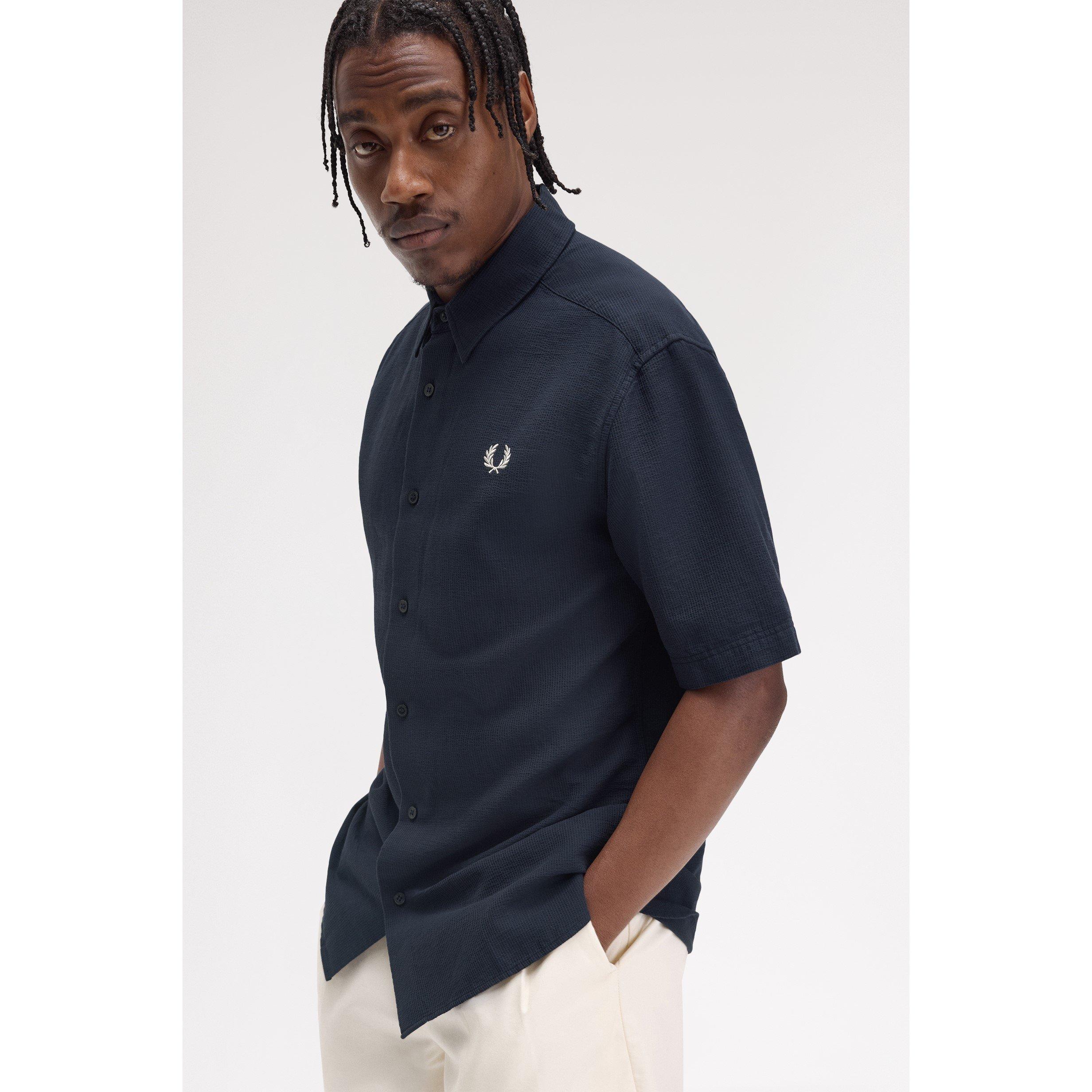 Fred Perry's Seersucker Short Sleeve Patterned Shirt is defined by a textured seersucker weave that brings visual depth to casual looks. The distinctive fabric gives the piece a light, characterful feel rooted in classic Fred Perry heritage.