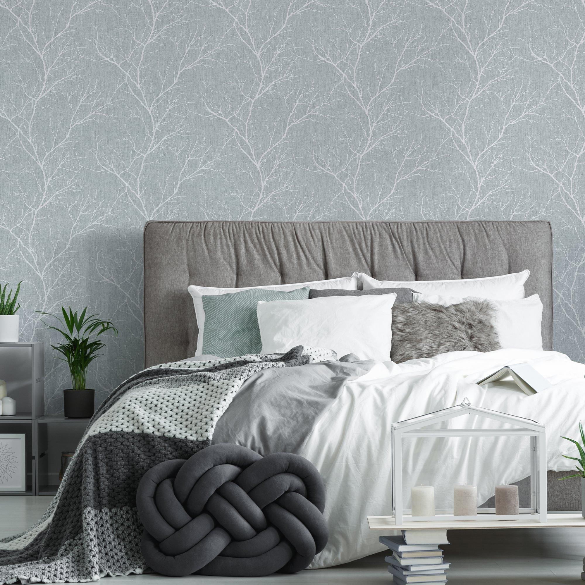 Create a cool classic look with this winter tree design, it will add a tranquil feel to any room.. The silhouette of tree branches sweeps through a duck egg background.