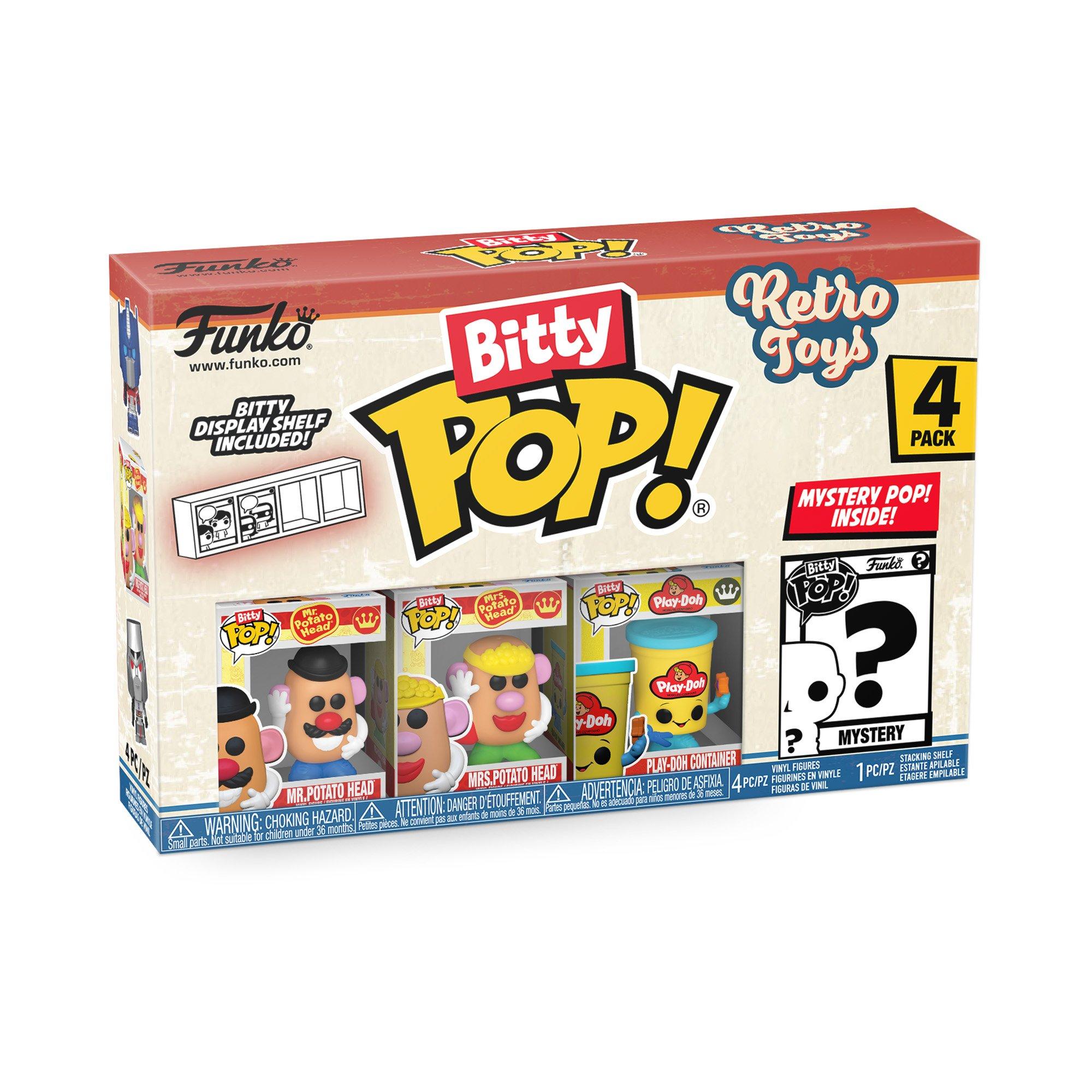 Your favorite Retro Toy Pops! have been shrunk into Bitty Pops! Expand your collection with this assortment of Bitty Pop! figures featuring your most beloved toys as miniaturized figures! This 4-pack includes Bitty Pop! Mr. Potato Head, Bitty Pop! Mrs. Potato Head, Bitty Pop! Play-Doh Container and a mystery Bitty Pop! figure. The possible mystery Bitty Pops! are Hyper Rare (1/6) Soundwave, Hyper Rare (1/6) Dr. Mindbender (chase), Rare (1/3) Cavity Sam, and Rare (1/3) Lite-Brite. Bitty Pops! are packaged in hard acrylic cases with detachable bottom lids. Detachable bottom lids double as acrylic bases, to which the Bitty Pop! figures are adhered. Sort and arrange your Bitty Pops! with the included display case! Acrylic display cases are stackable and hold four Bitty Pop! figures each. Vinyl figures are approximately 0.9-inches tall. Four figures per single package purchase. Warning: Choking Hazard. Collectibles are small. Not for children under the age of 3 years old. Item selection is random, as each piece is in blind packaging. We cannot accept requests for specific items. You may receive duplicate figures.