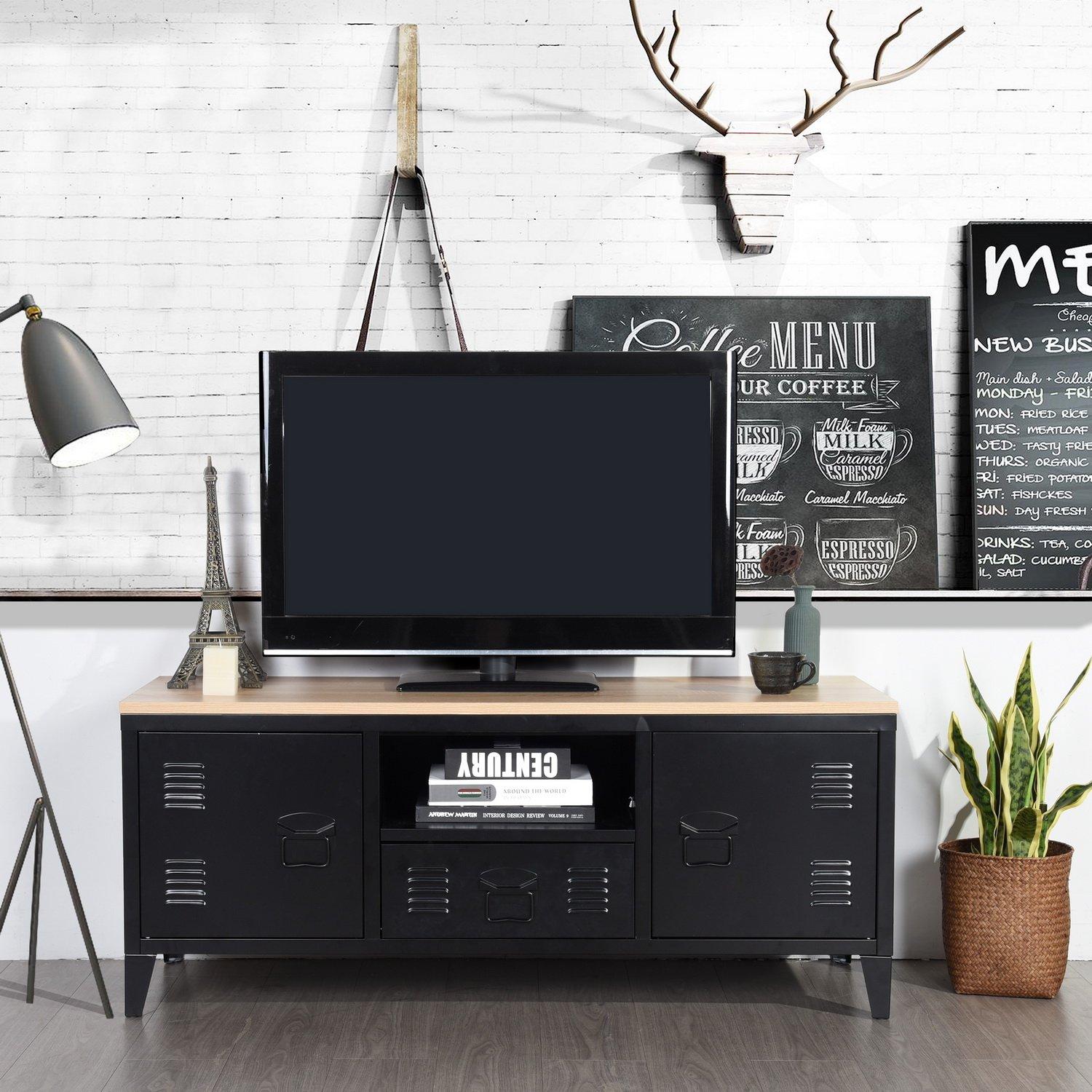 Industrial Metal TV Stand with Storage 120 cm Media Console Cabinet