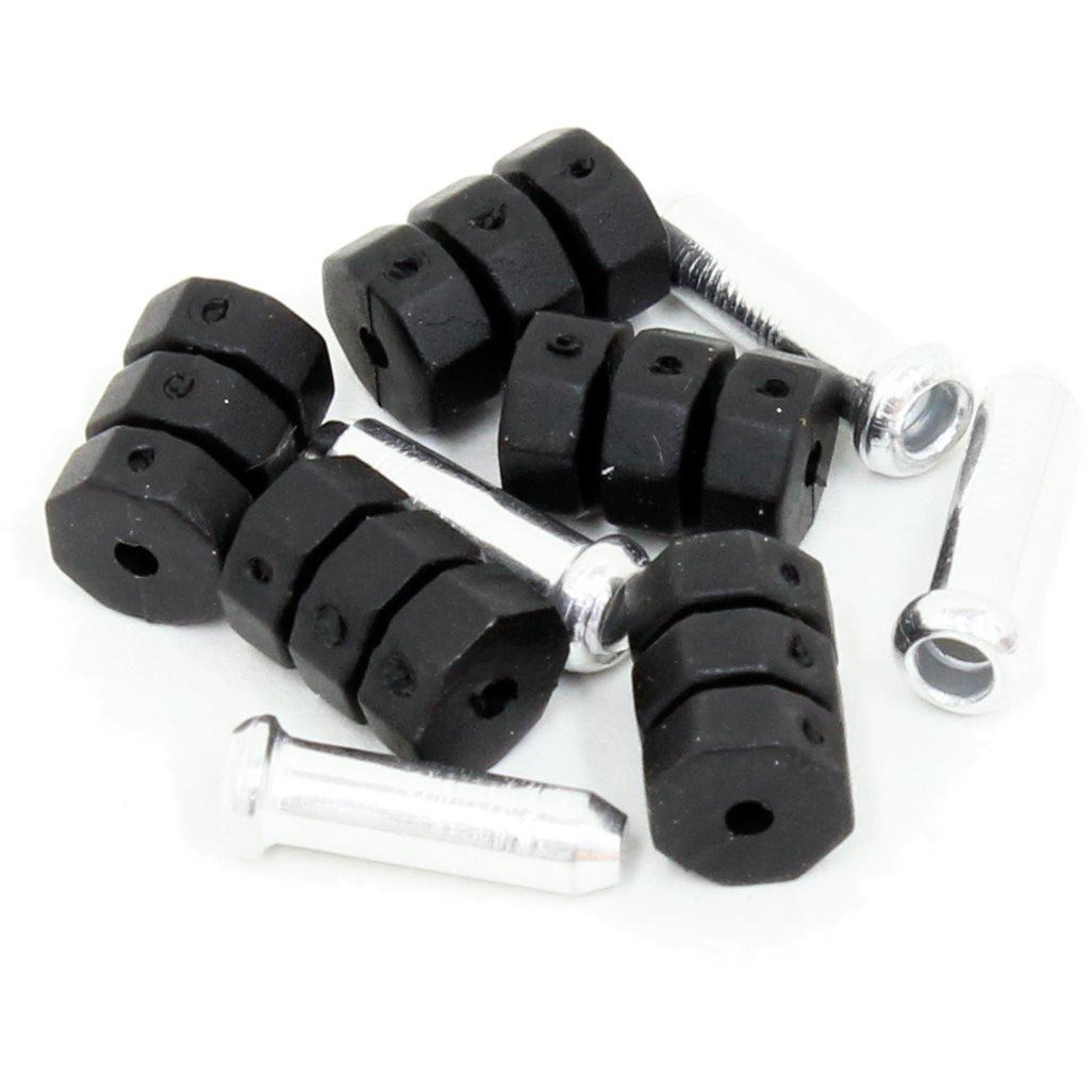 The FWE Cable Donut and End Cap Set is a great value cycling necessity from Evans Cycles' FWE brand. The ends caps are used to prevent your cables from fraying. They will stop frayed cables getting caught on skin or clothing and reduce the chance of your cable braking. Also, a fraying cable can really affect the clean look of your beloved bike.