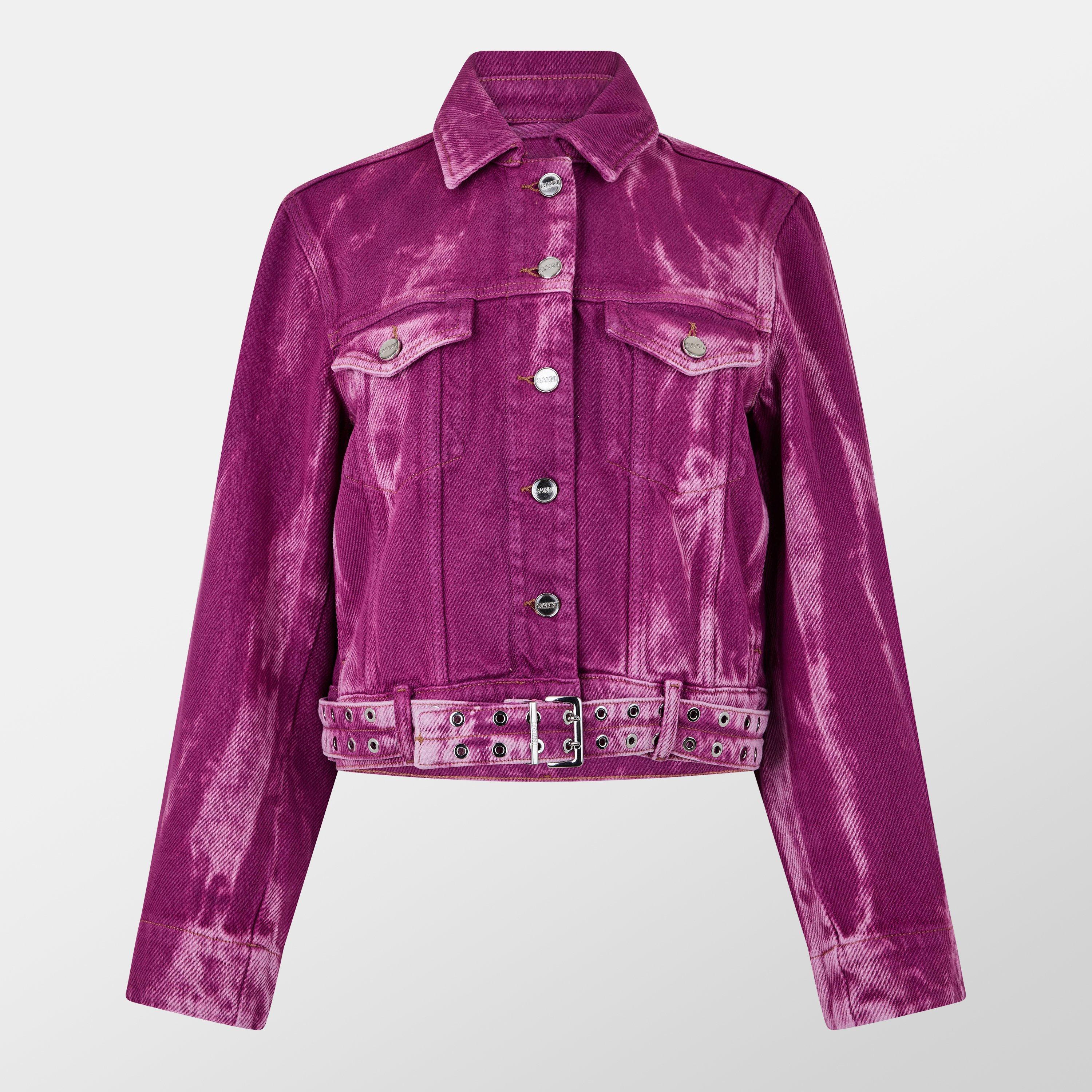 Ganni Women's Heavy Denim Belted Cotton Cropped Long Sleeve Denim Jacket