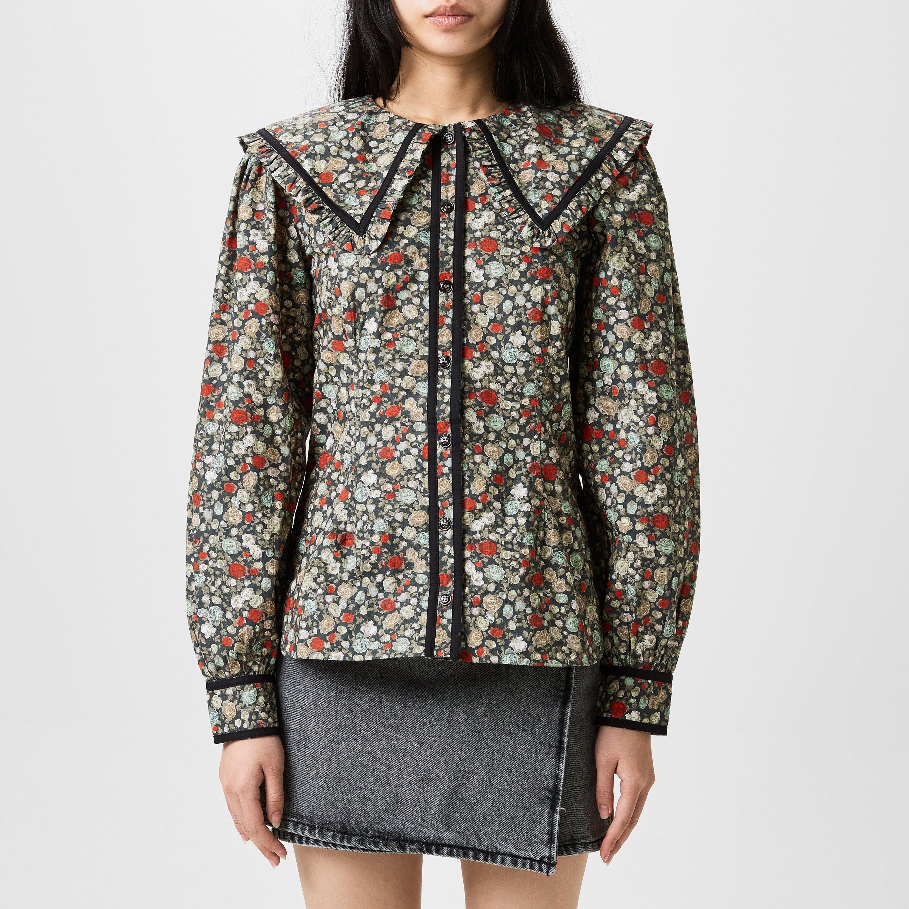 Embodying the house's maximalist style, the Ganni Floral Printed Cotton Shirt is a striking addition to any trend-setting wardrobe. Embodying the label's love of florals, this women's is sure to make a striking statement in every setting, no matter whether you are meeting friends for brunch or attending a stylish evening event.