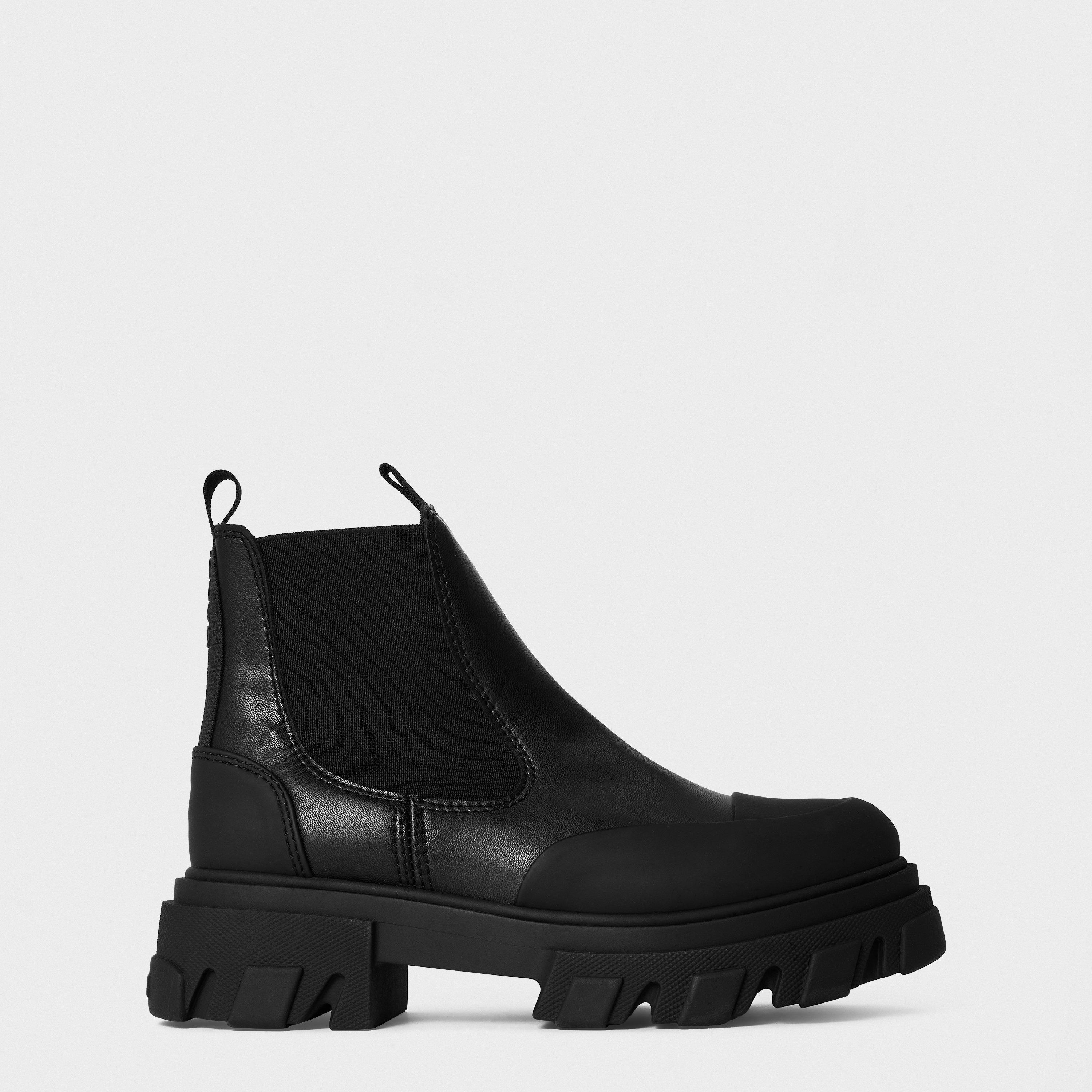 The Ankle Heeled Boots from Ganni deliver a high-fashion style with a sleek shape. Featuring a sleek design with a sturdy heel and clean lines, these boots complement various outfits while maintaining Ganni's modern design elements.