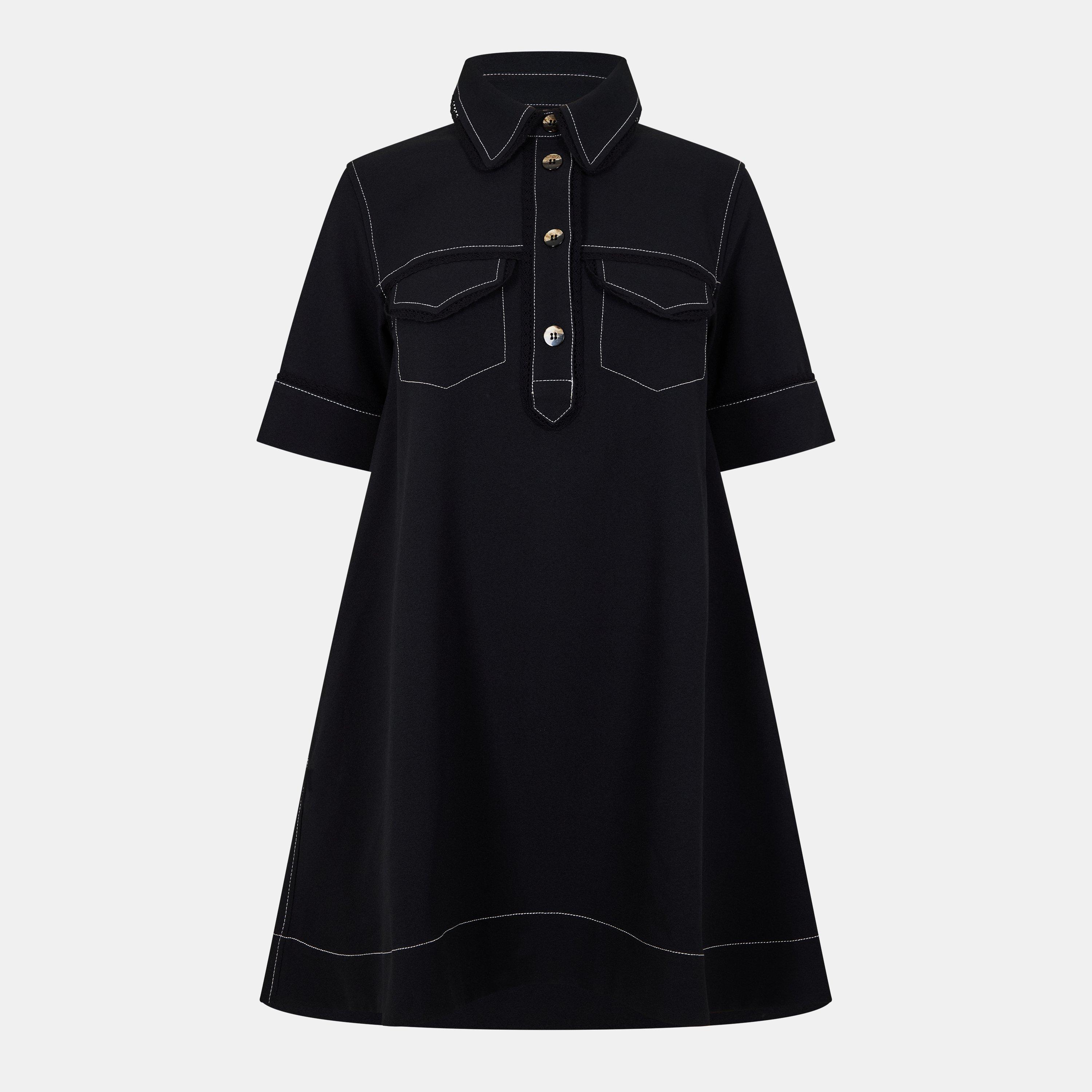 The Ganni Crepe Mini Dress is cut to a mini length for a neat profile. The crepe fabric offers clean drape and holds its shape.
