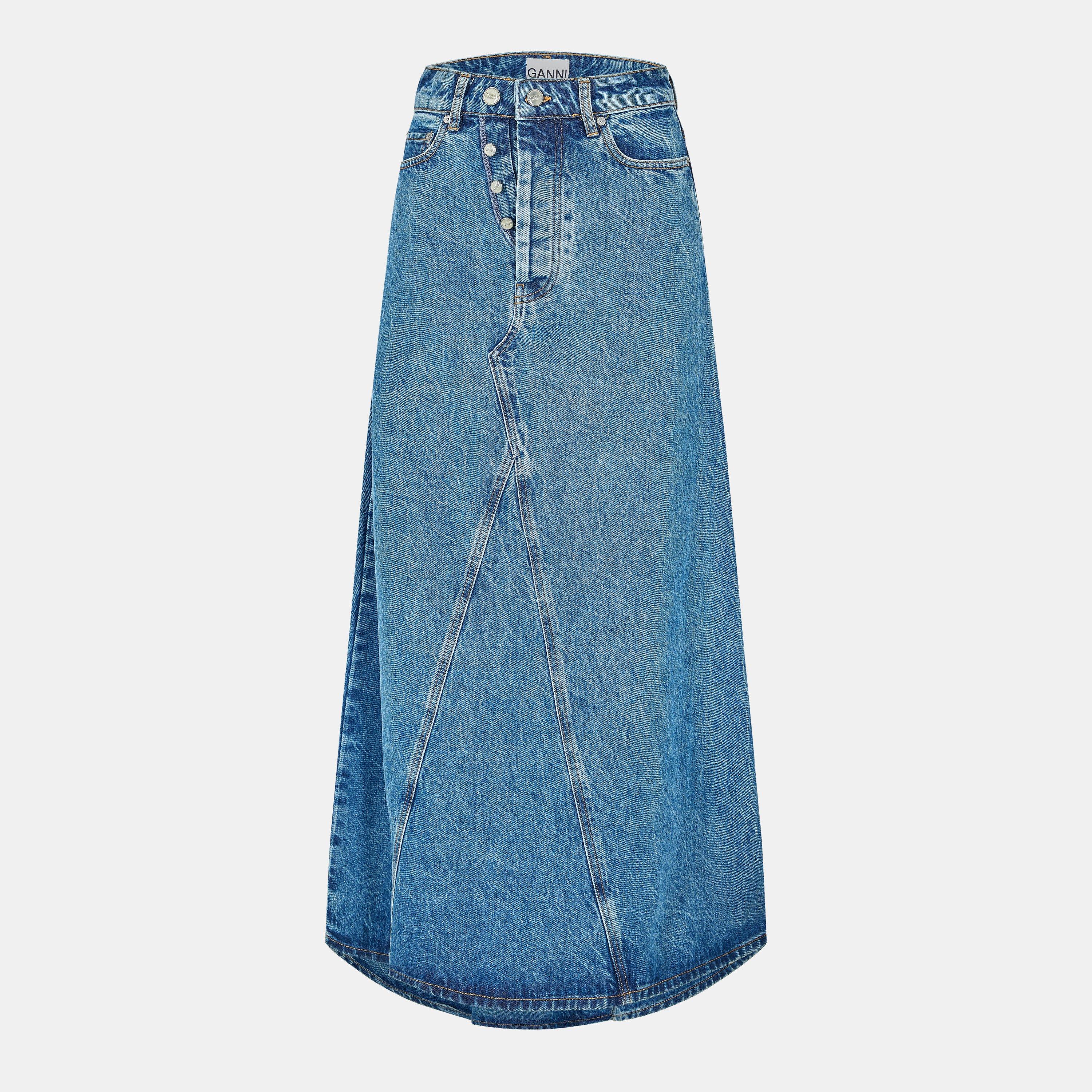 Cut to a floor-skimming design, the Ganni Denim Maxi Skirt brings a relaxed ease to everyday dressing. Structured denim fabric offers lasting durability while maintaining a fluid drape.