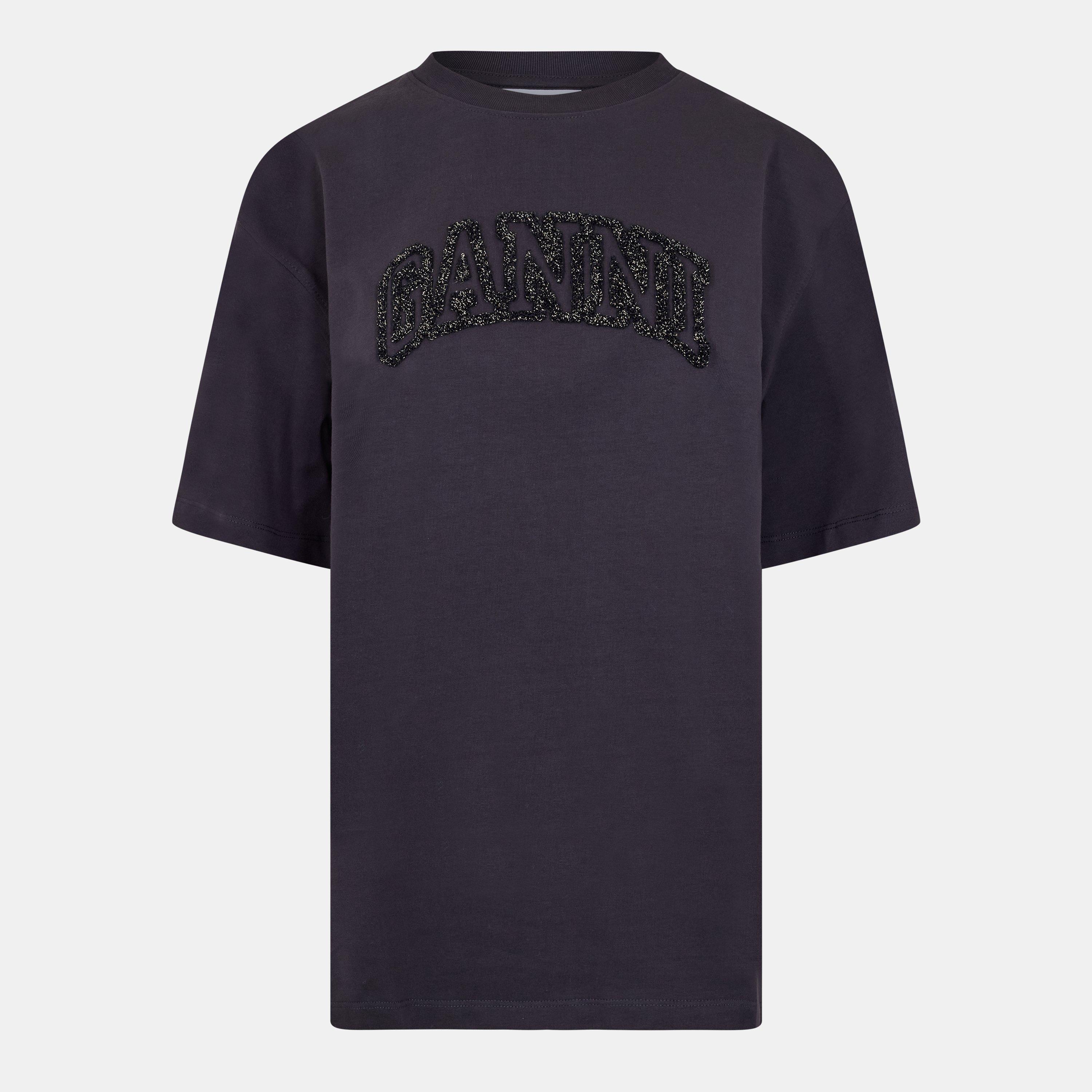 Relaxed lines define this Ganni Women's Drop Shoulder T-Shirt, built with a dropped shoulder seam that creates a laid-back look. Designed in a regular fit, this tee offers easy style for everyday rotation.