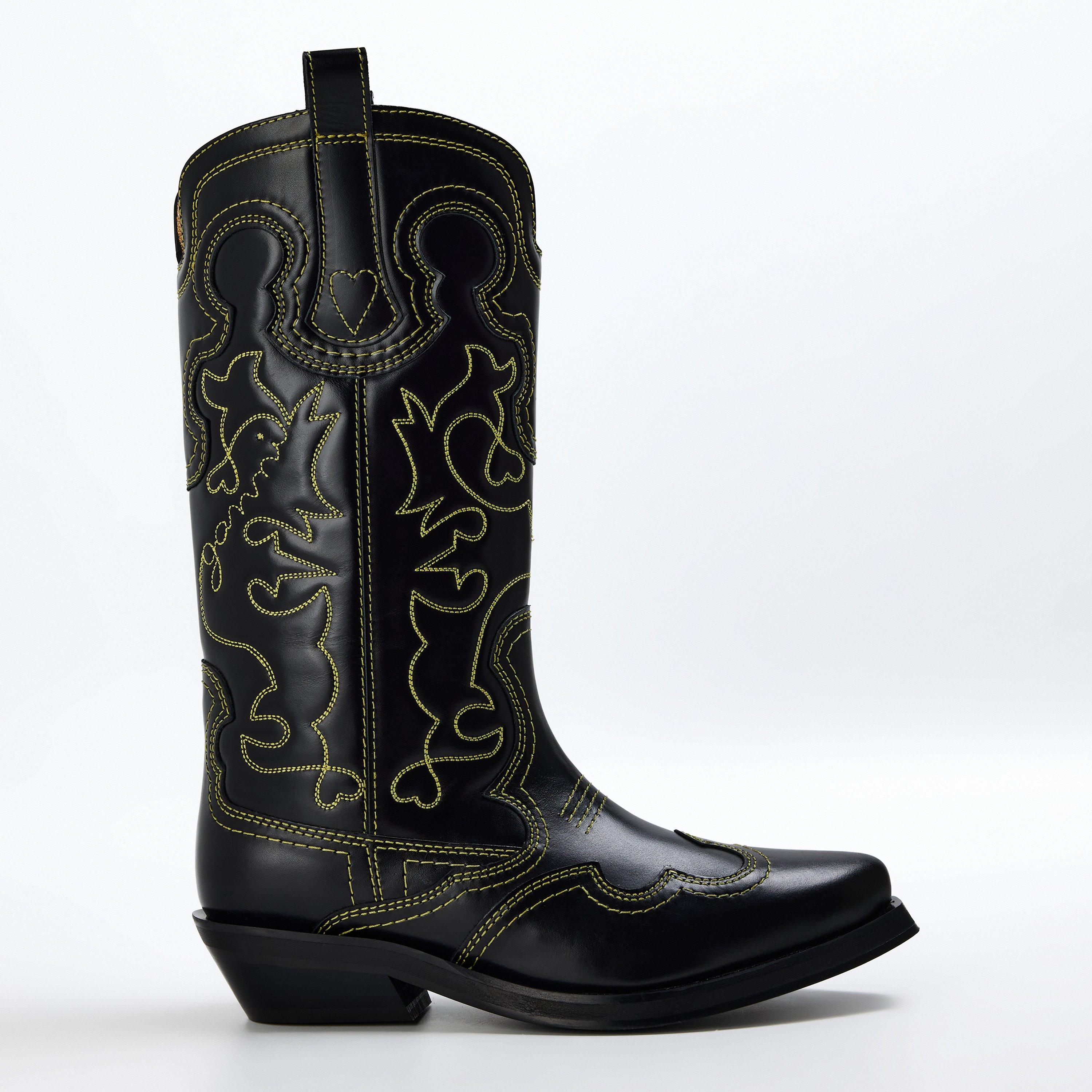 Ganni's Ember Western Cowboy Boots feature structured shaping with classic details in a classic western style. Built on a traditional western last, the boots feature a tall shaft for full leg coverage.