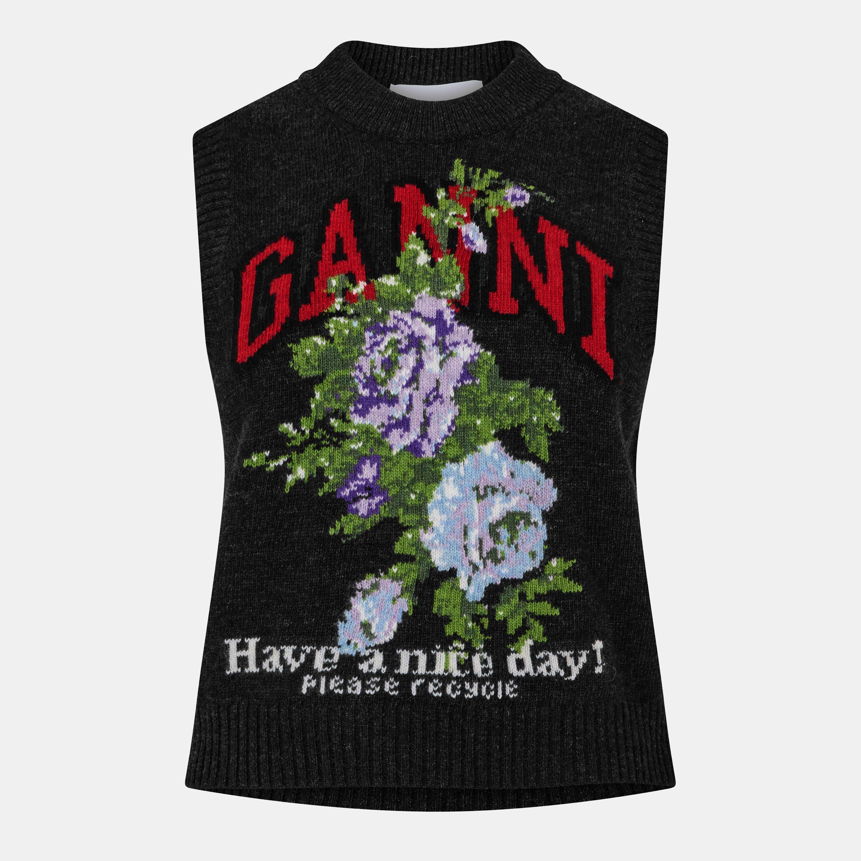 Met the Ganni Rose Wool Vest. Cut to a regular fit in a premium knit, it's a playful choice for your everyday edit.