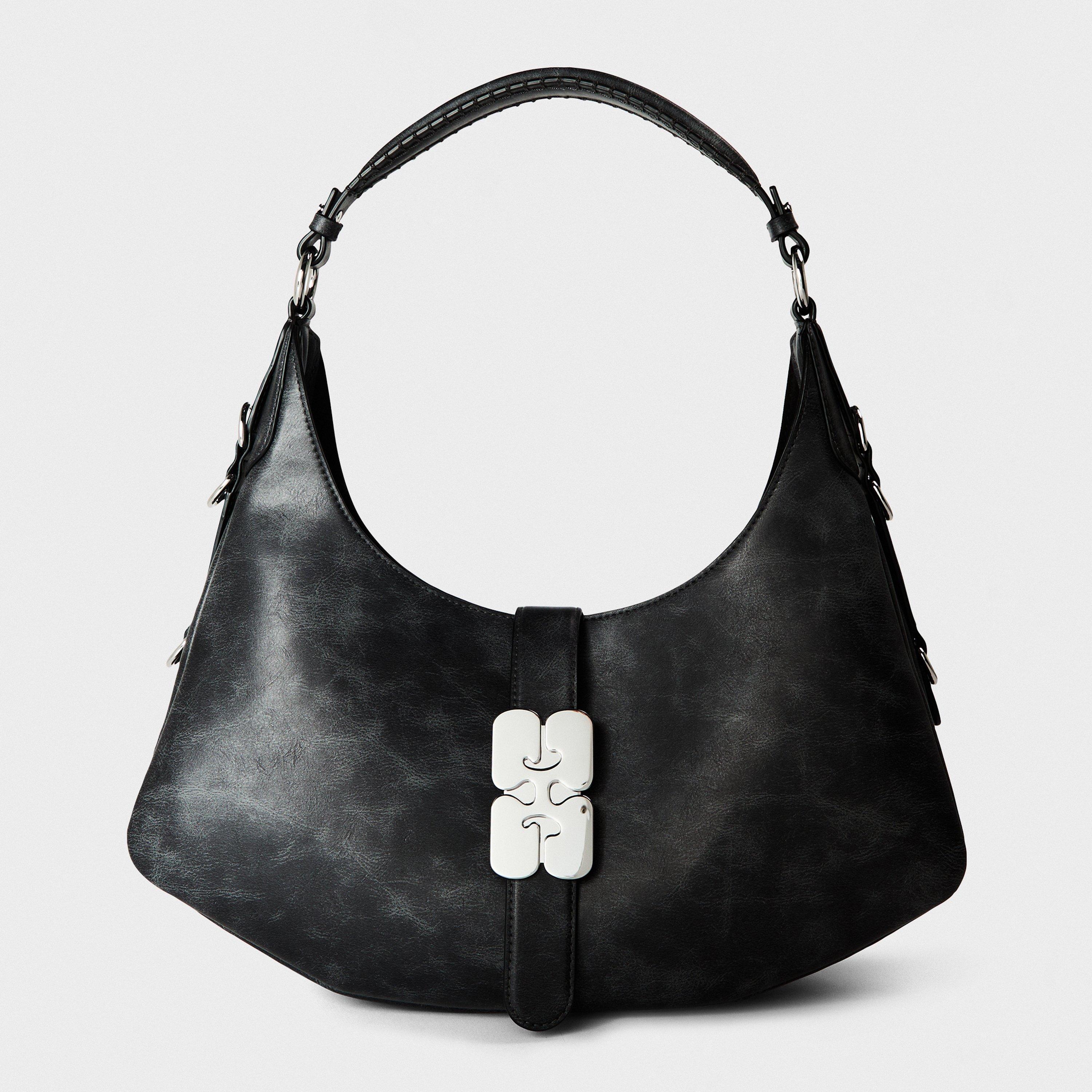 Ganni's Kat Small Shoulder Bag delivers compact functionality for essentials in transit. Its streamlined shape works across casual outings and dressier occasions.