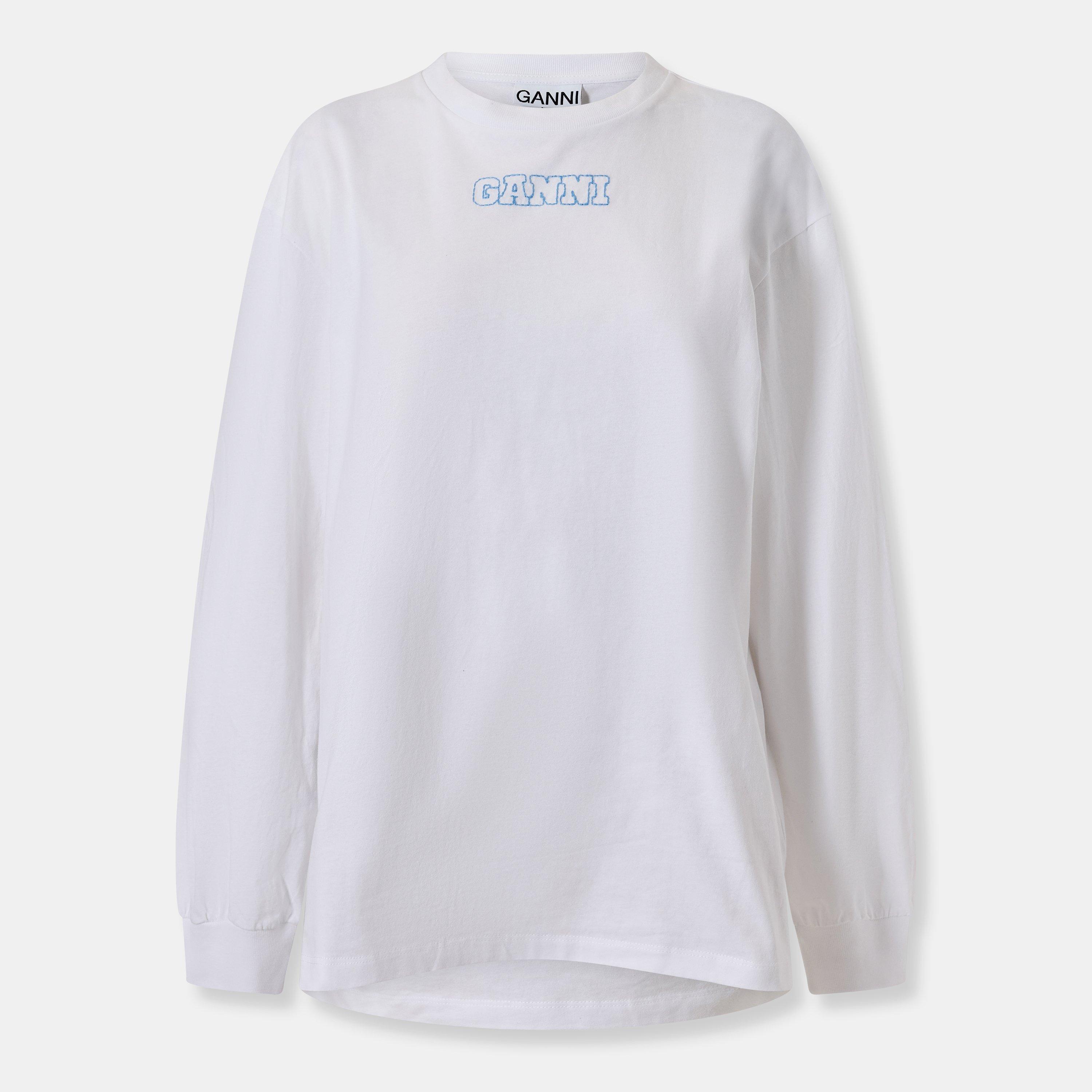 The Ganni Rose Long Sleeve T-Shirt brings a feminine touch to everyday styling. Its relaxed fit and extended sleeves create a flexible foundation for layered or standalone wear.