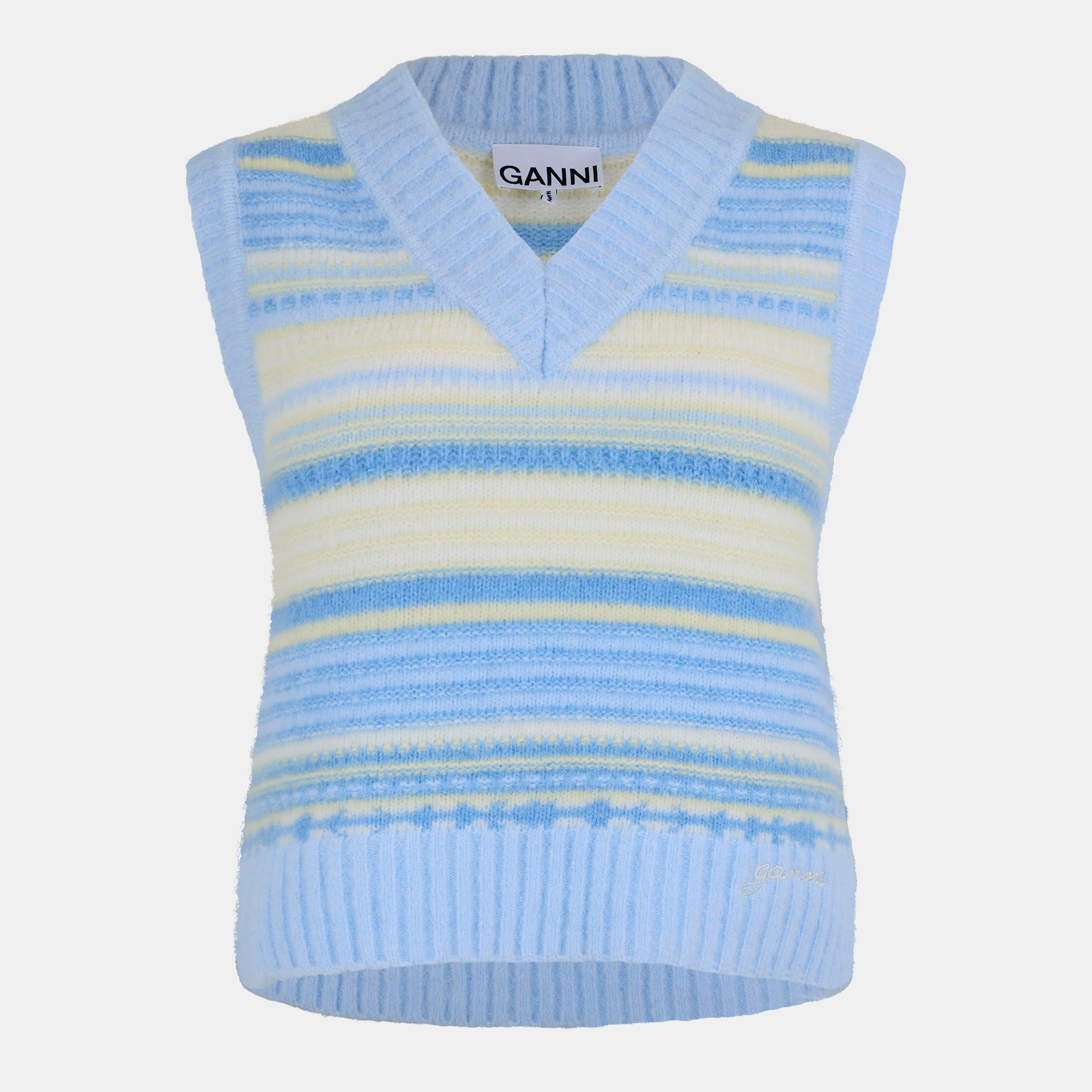 The Ganni Stripe Jumper Vest offers adaptable styling with a clean, structured design. Ideal for wearing across seasons.