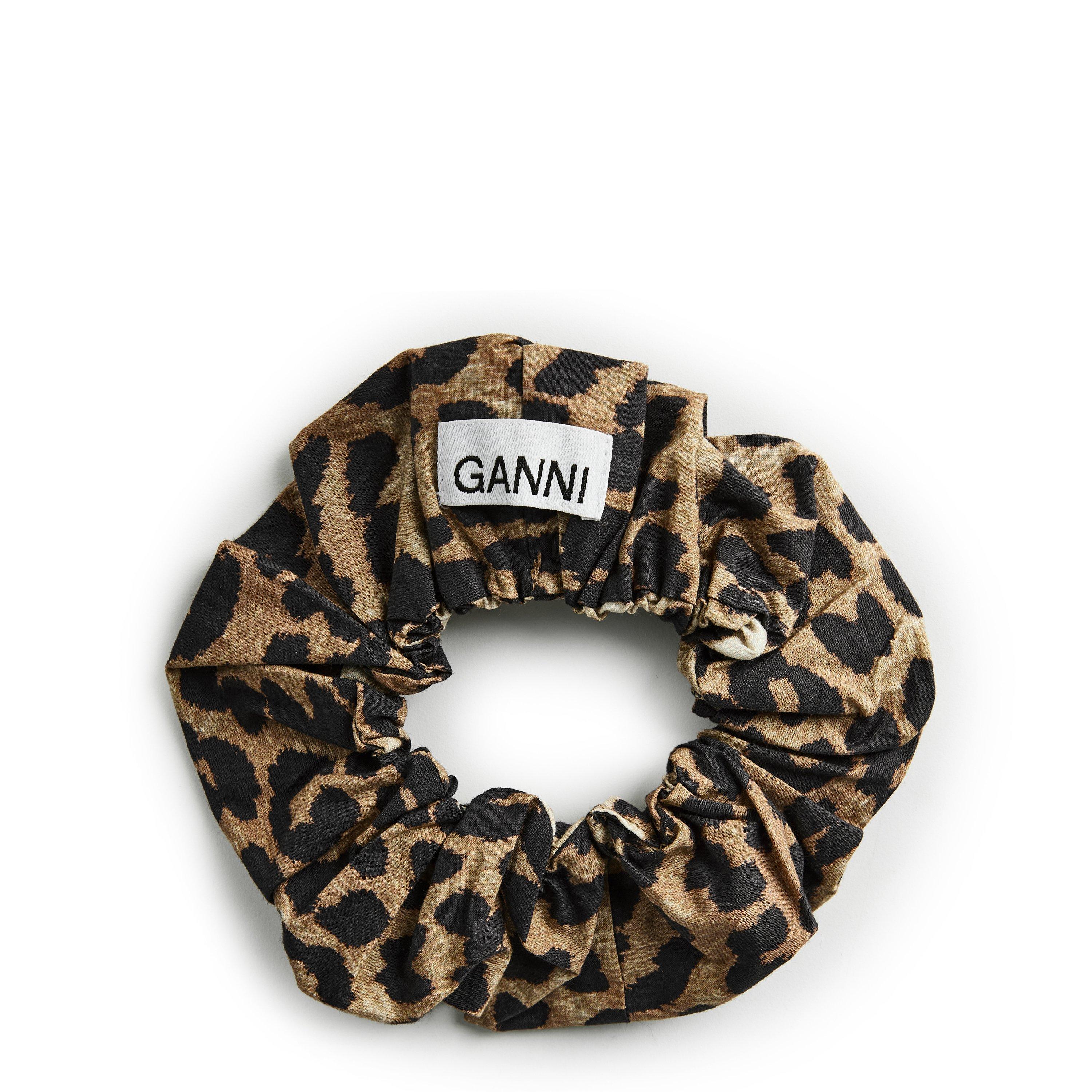 Add a dash of GANNI's signature style to your hair accessories with this leopard print scrunchie. Made with a luxuriously soft fabric, this statement piece features generous gathering that creates volume while securely holding your hair in place. The bold animal print pattern brings a playful touch to any hairstyle, while the branded label adds an authentic designer finish.