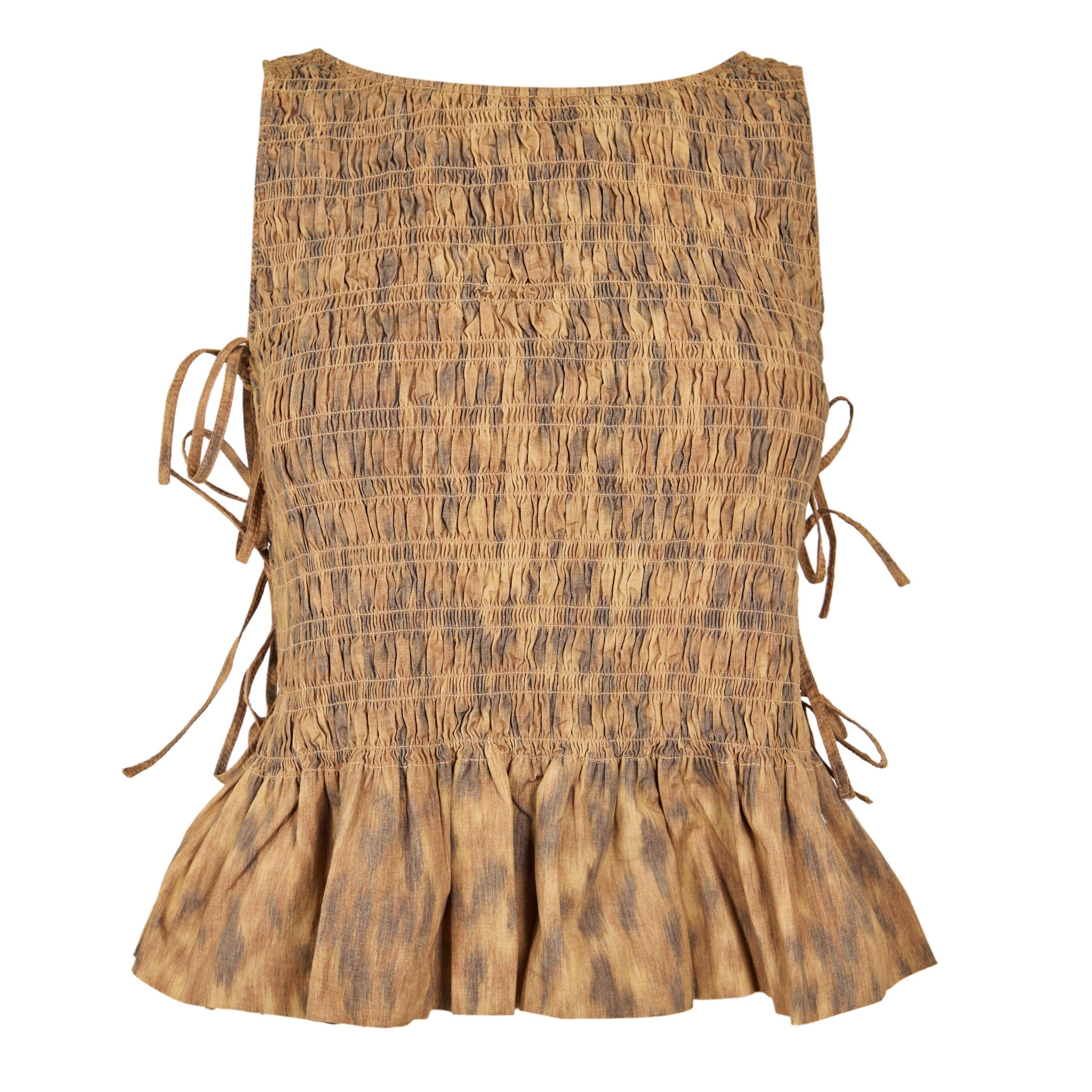The Ganni Women's Patterned Short Sleeve Shirt offers a streamlined cut with visual interest across the fabric. The sleeve length sits close to the shoulder for unrestricted movement.