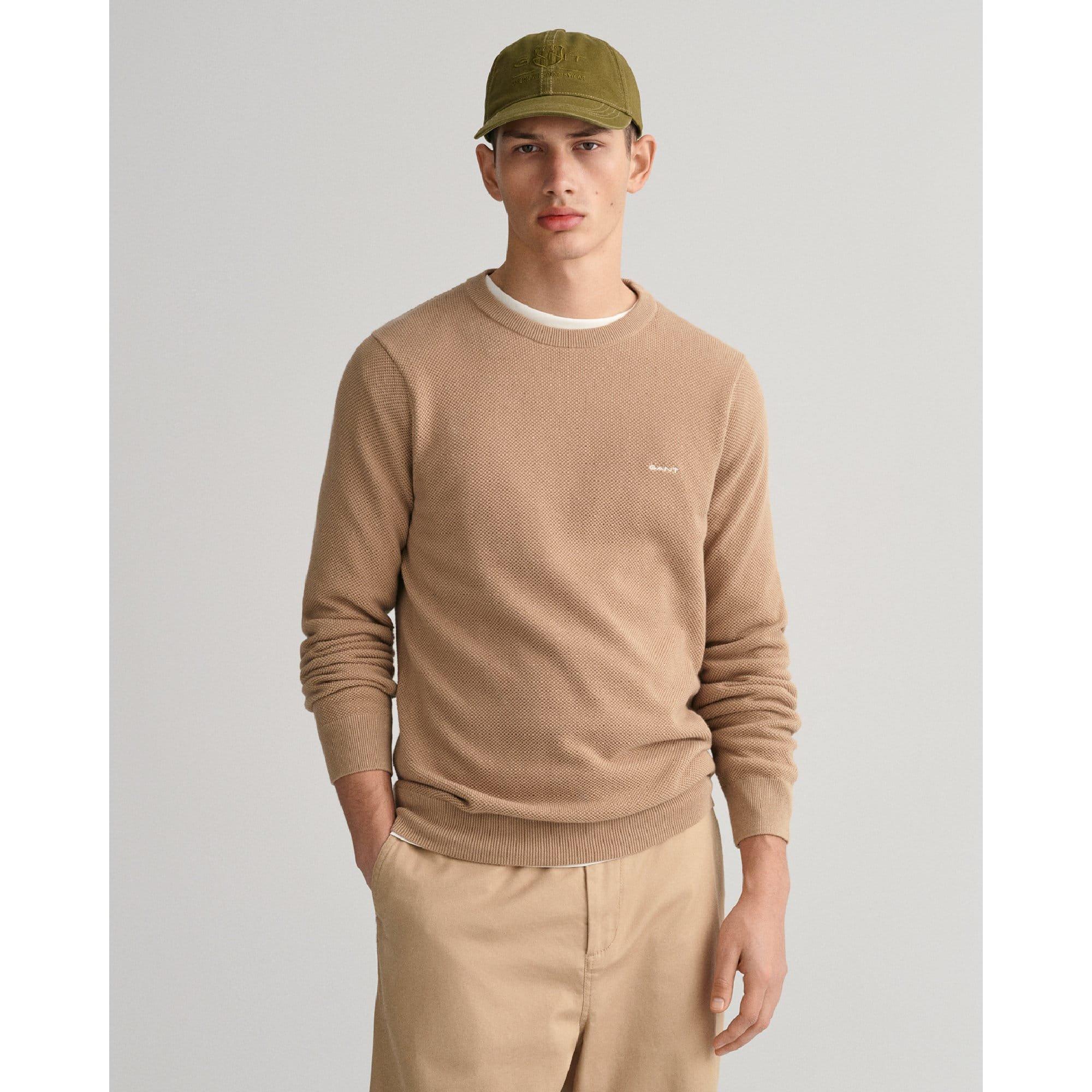 This versatile sweater from GANT is knitted from 100% cotton in a lightweight piqu, structure. Designed for a regular fit it features ribbed detailing at the hem and cuffs a classic crew neck and a GANT logo embroidered at the chest. Layer over tees and collared shirts and wear it with everything from jeans to chinos.