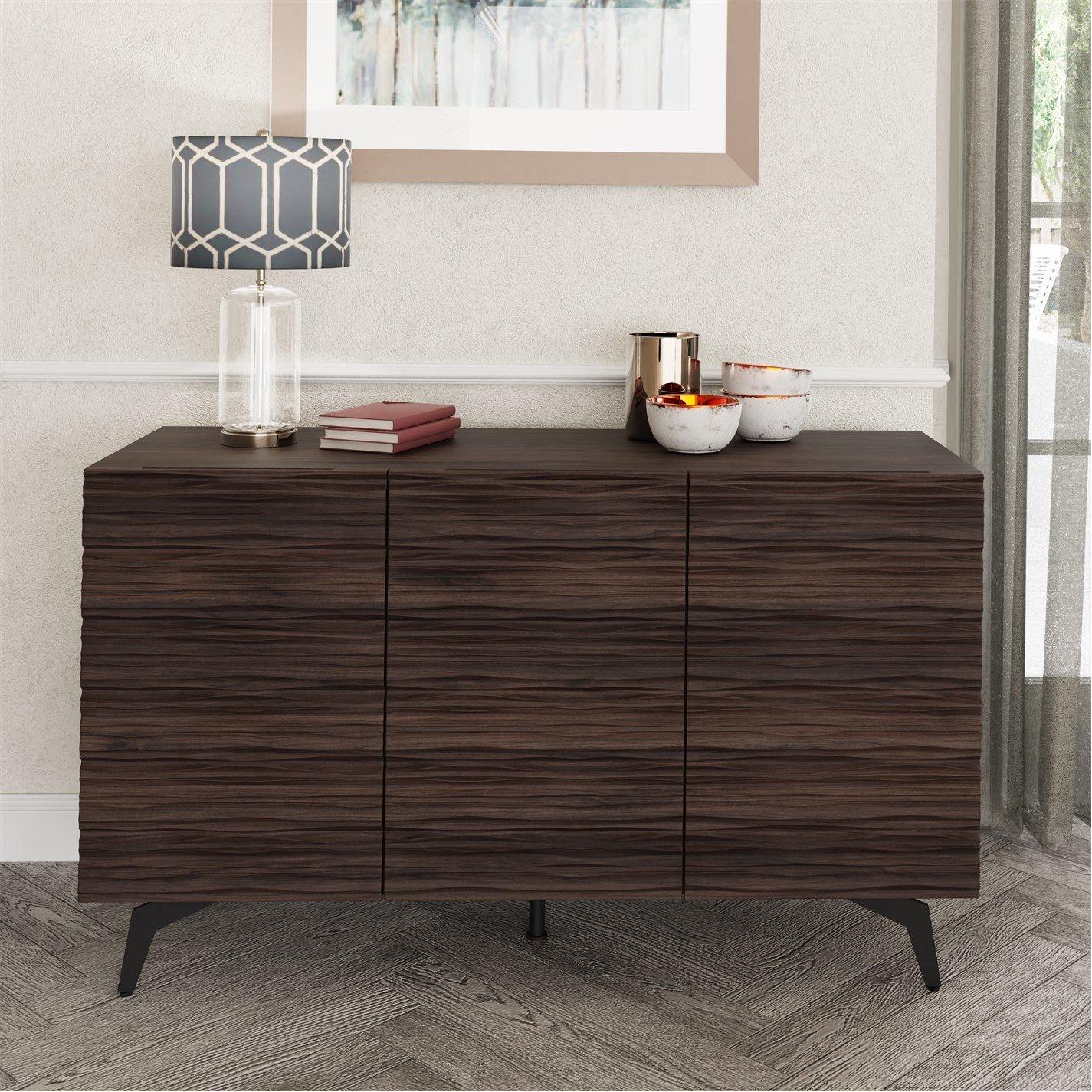 The Bantham Sideboard proves beauty is inside and out. With soft-close hinges and integrated finger pulls, its exterior features a captivating wave-textured pattern in dark walnut. A standout addition to any home.