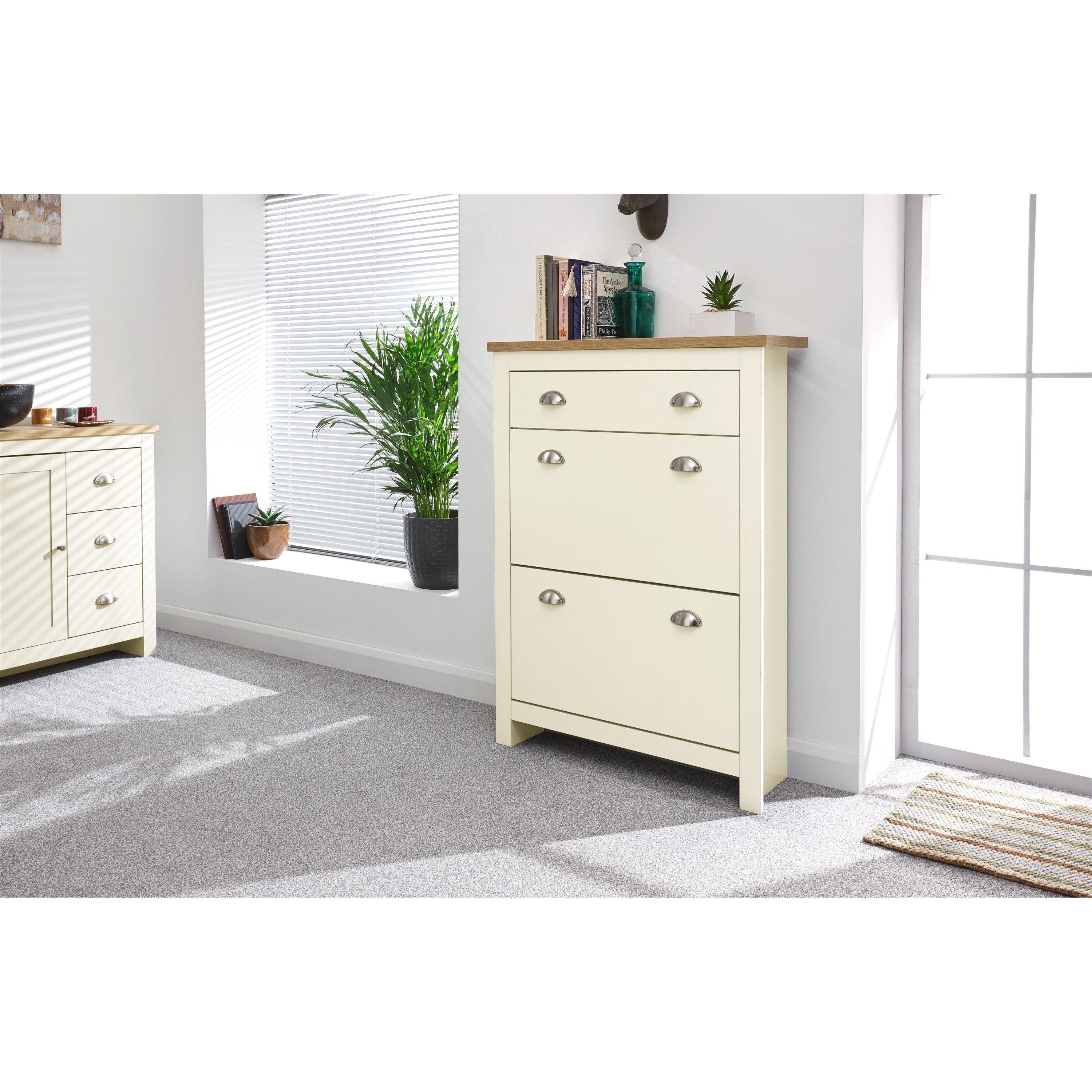 Keep your hallway free from clutter with this beautiful and practical 2 tier Lancaster shoe cabinet. With 2 compartments to store your footwear and a handy drawer for keys etc. it is ideal for any home.