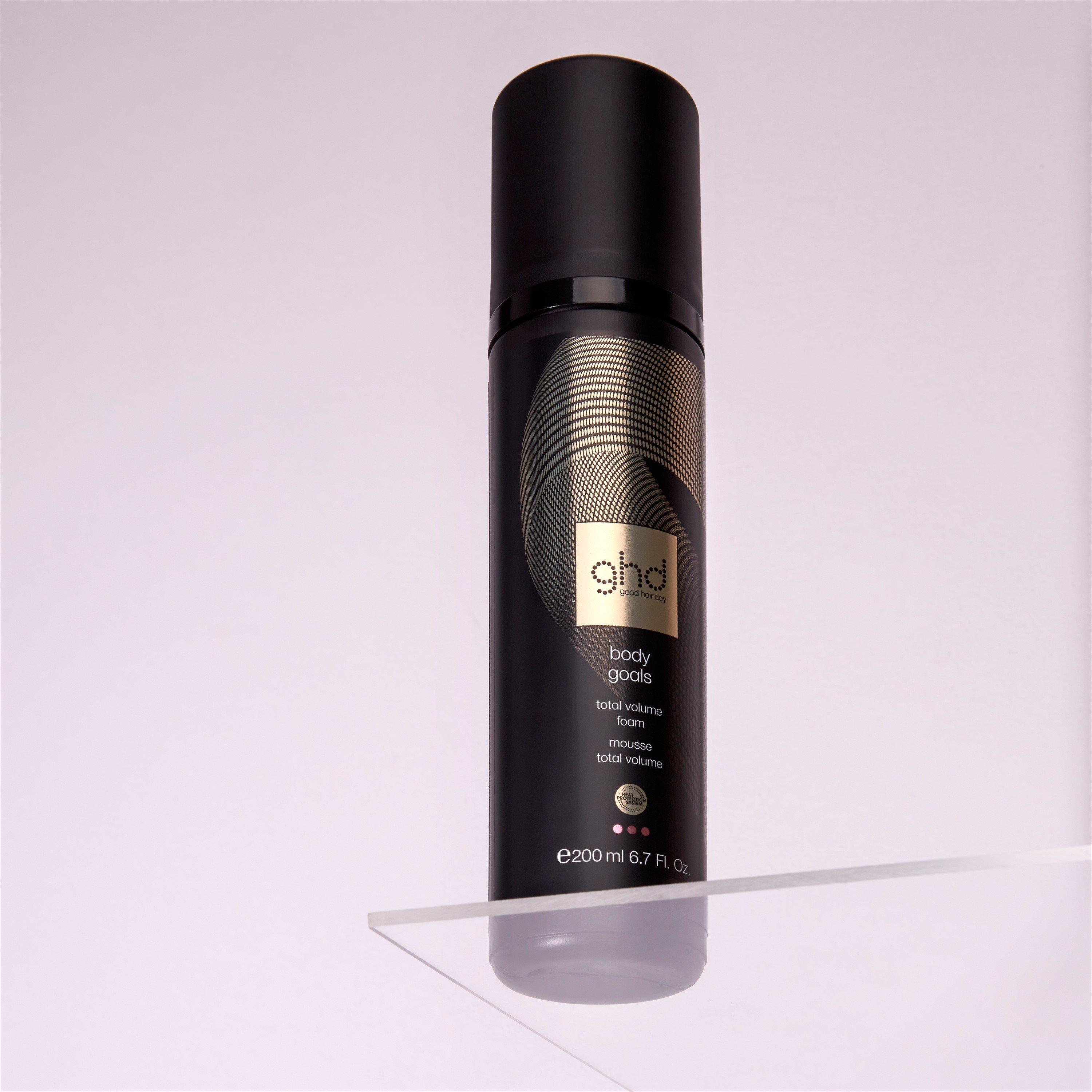 ghd body goals - total volume foam Contains the ghd heat protection system Superior volume, 7/10 agree* Fuller body, 8/10 agree* Suitable for all hair types Professional end results 24 hour volume hold when used with the ghd helios hair dryer