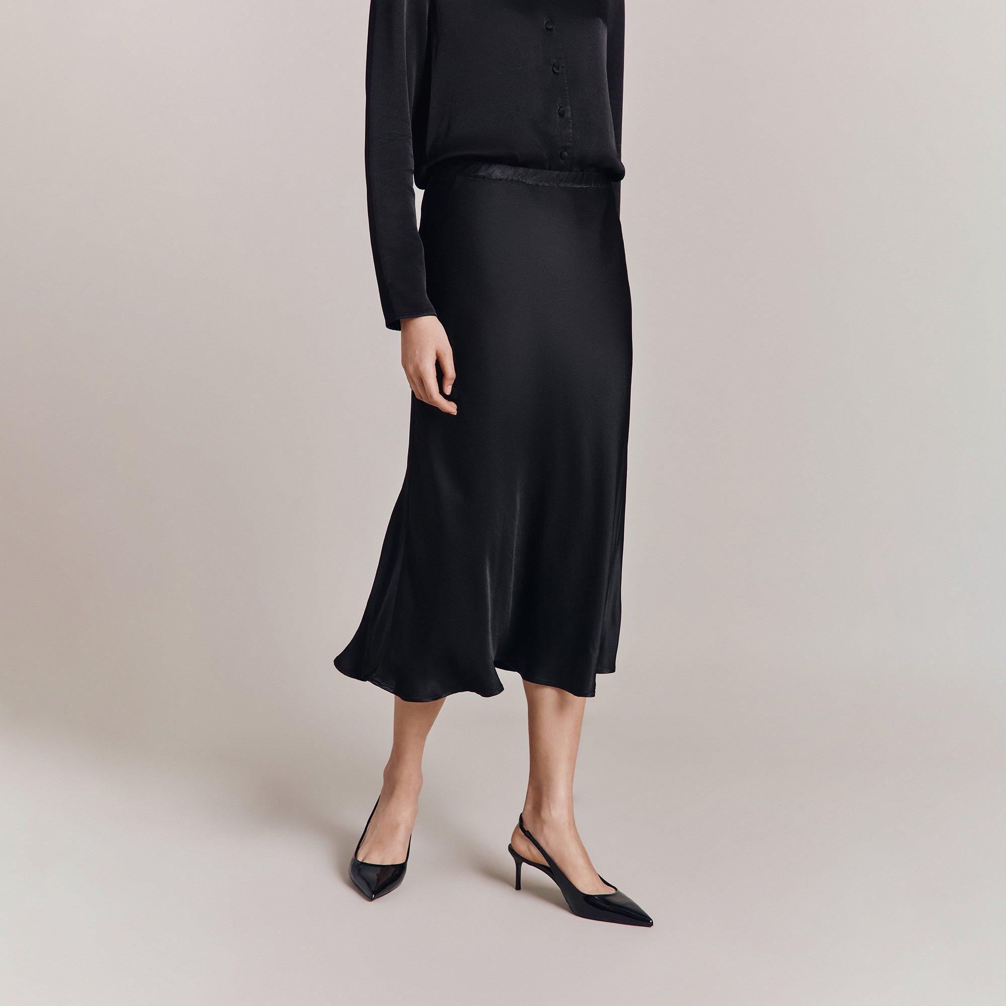 The Ghost Luna Slip Skirt is built with a bias cut for a streamlined A-line shape. The design maintains a clean finish throughout.