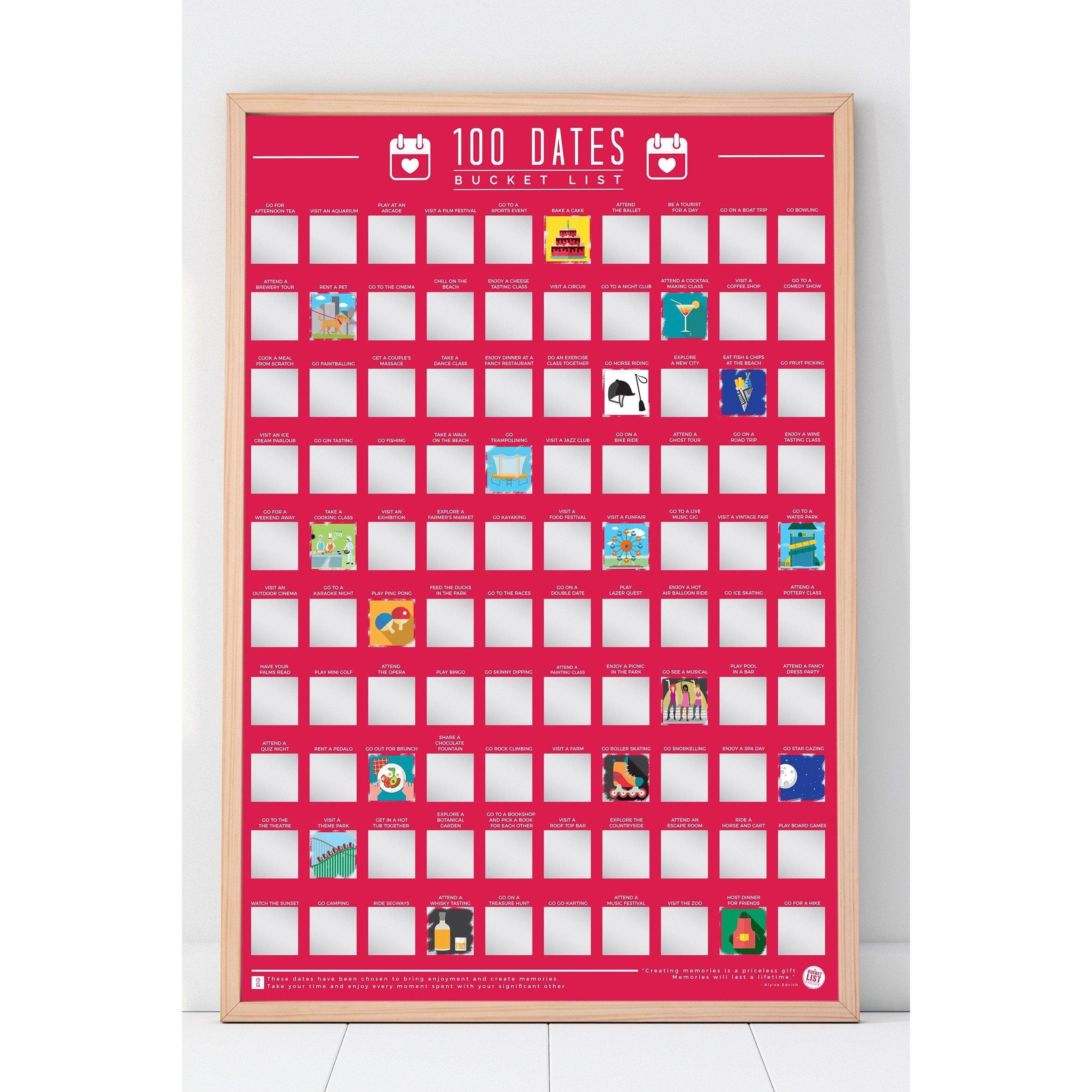 Are you running out of date ideas? Well now you and that special person in your life can explore new areas and try new hobbies together with our 100 Dates To Go On scratch poster.