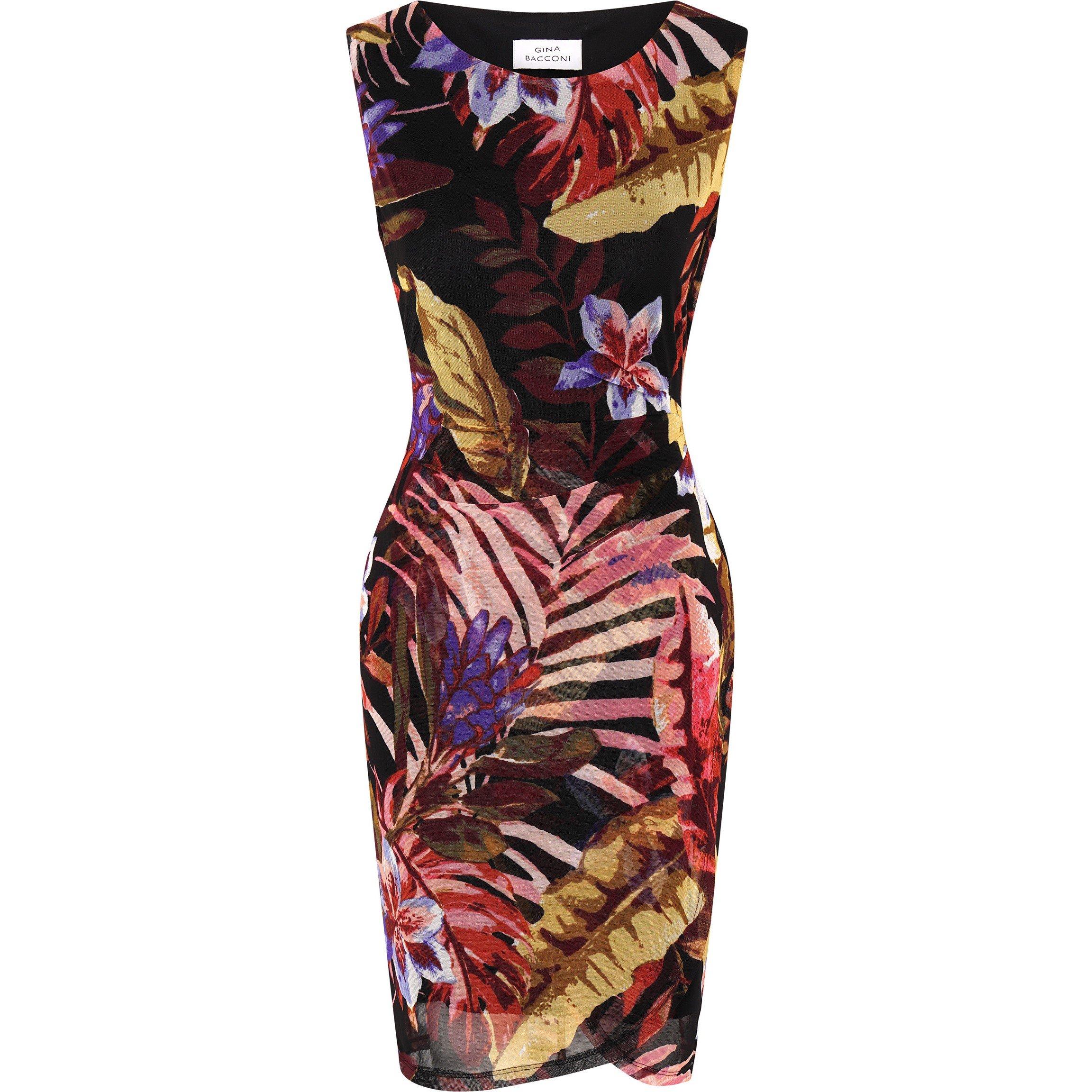 Our new vibrant Aimee tropical print dress features a gorgeous botanical print in shades of pink, purple and green, this striking piece combines effortless style. The sleeveless silhouette and round neckline offers a clean and classic style, it is a perfect dress for daytime events, evening occasions, or warm weather getaways.