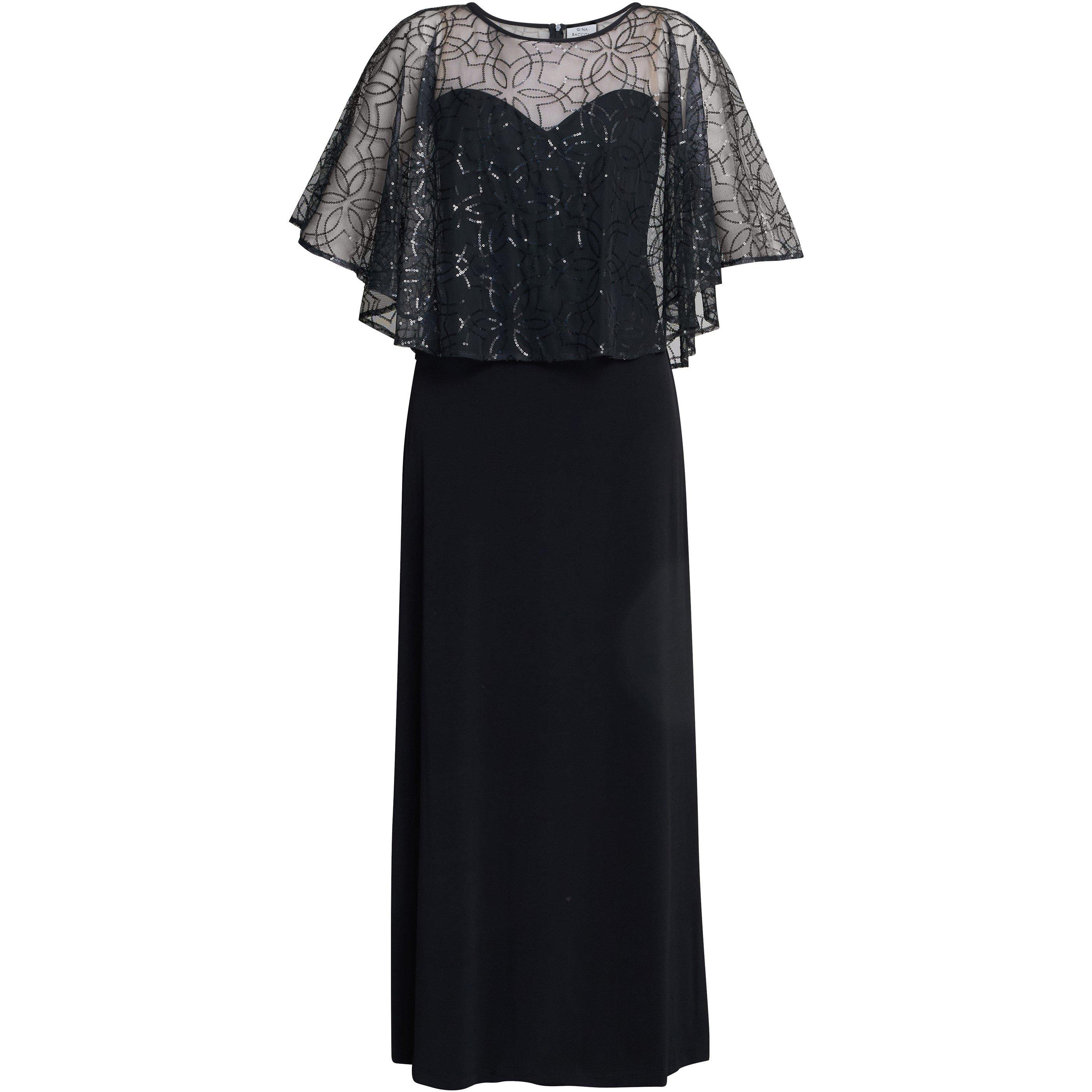 Feel stunning in our new Anoushka maxi dress, designed with sophistication and elegance in mind. This black dress features a full length, sleek silhouette that elongates the figure, while the sheer overlay adds an extra touch of glamour. Delicately beaded with a subtle pattern, this cape overlay drapes gracefully over the shoulders, adding coverage and chicness. Measuring 154cm.