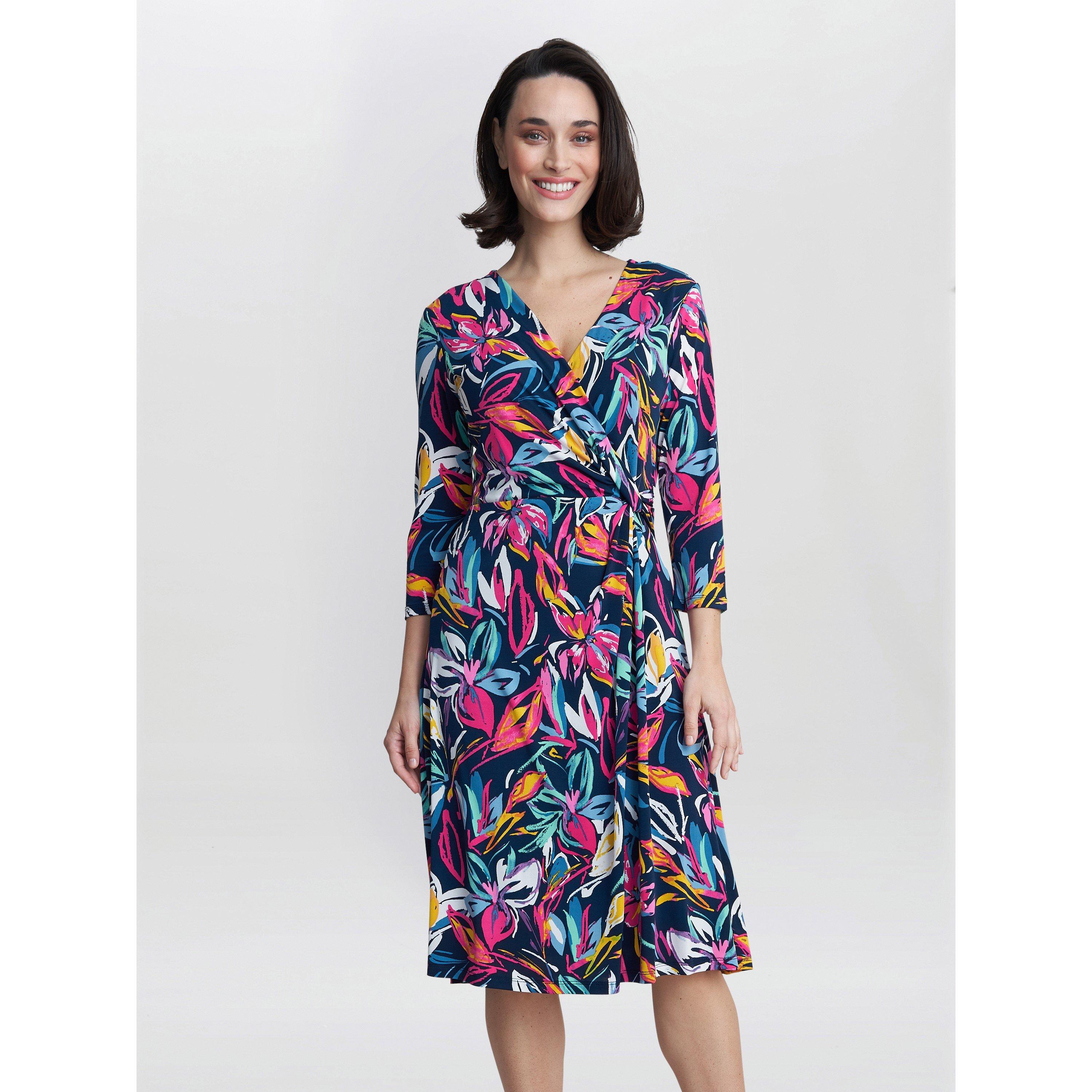 A perfect jersey dress, simple 3/4 sleeves and a v- neck shape, this dress features a flattering twist effect at the waist and fuller skirt. Wear to the office and wear all night!