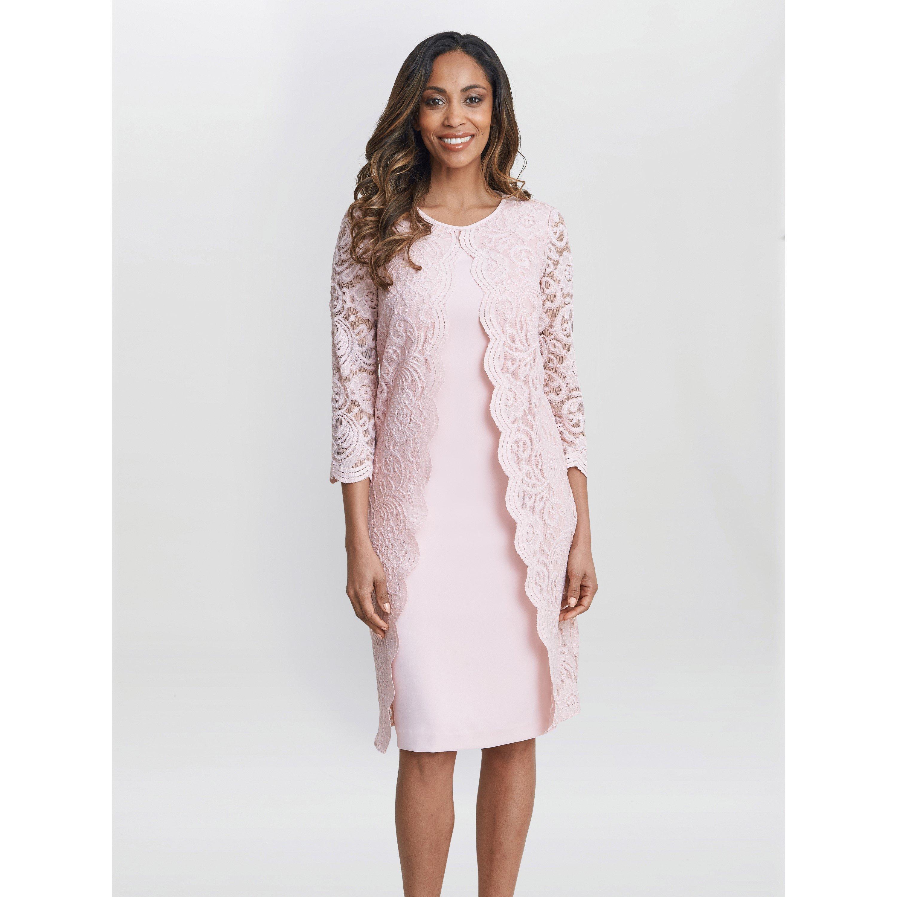 Gina Bacconi presents its stunning crepe and lace dress. This perfect occasionwear piece is comprised of a classic shift dress overlaid with a dainty floral lace. The lace features a scallop lace which adorns the front of the dress and the sleeve edge.The dress is fully lined and fastens using a concealed back zip.