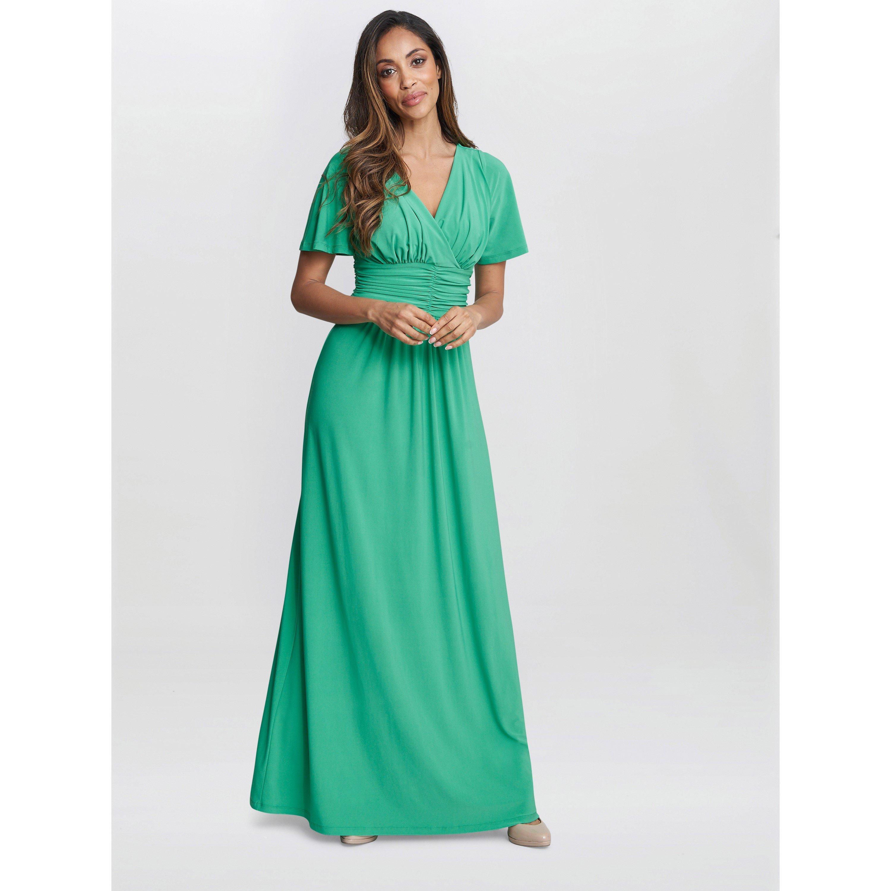 Fashioned from comfortable jersey fabric in a gorgeous print, this dress is guaranteed to make you stand out. The bodice takes an elegant wrap-over design and gathers at the waistline before giving way to a flowing maxi skirt. It features a flutter sleeve and is zip-free for ease.