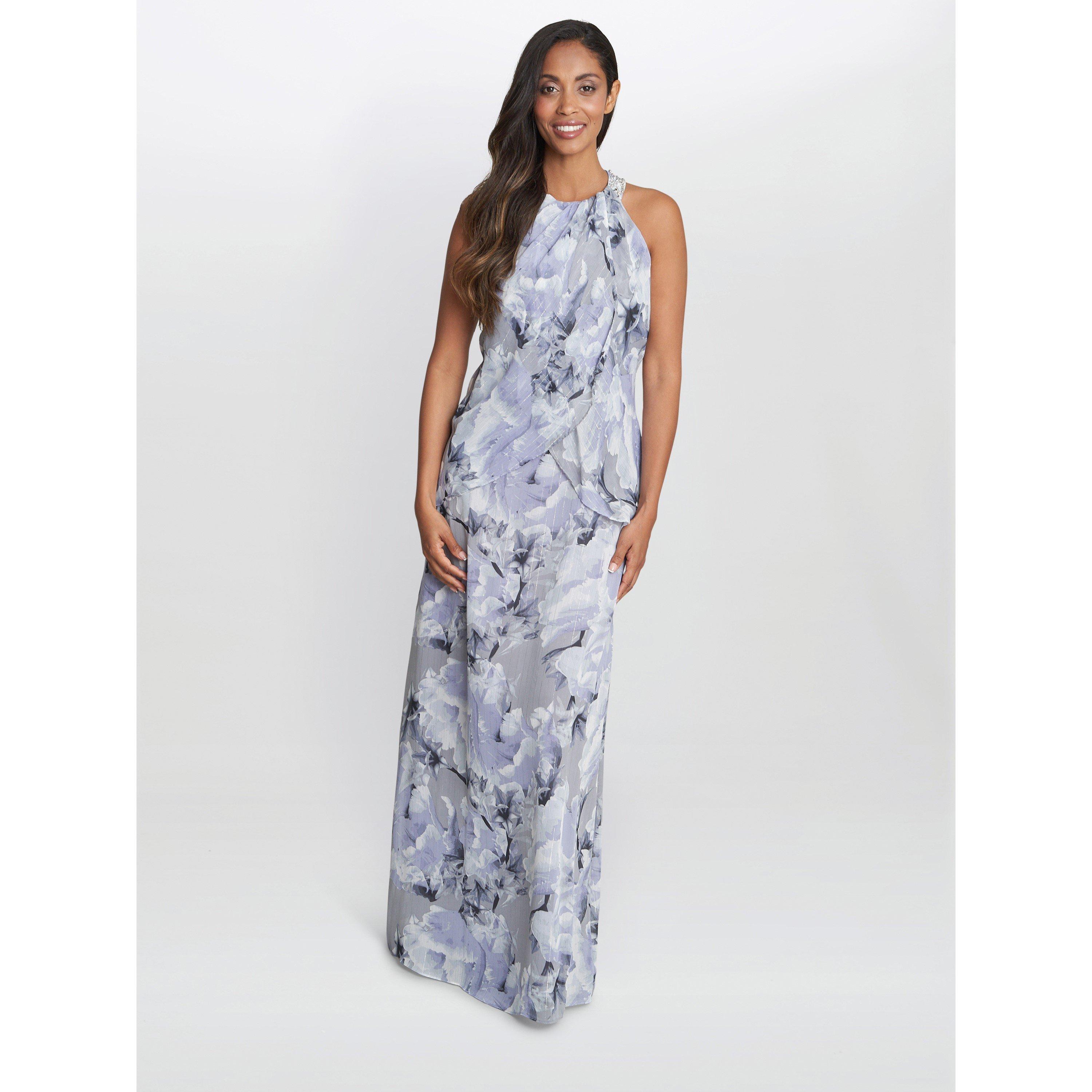 Have fun in this fashionable piece that features a sleeveless halter neckline embellished with beads. The dress is fashioned with a floral print, perfect for your next holiday! Earn your place in the limelight in this ahh-inspiring maxi dress by Gina Bacconi.