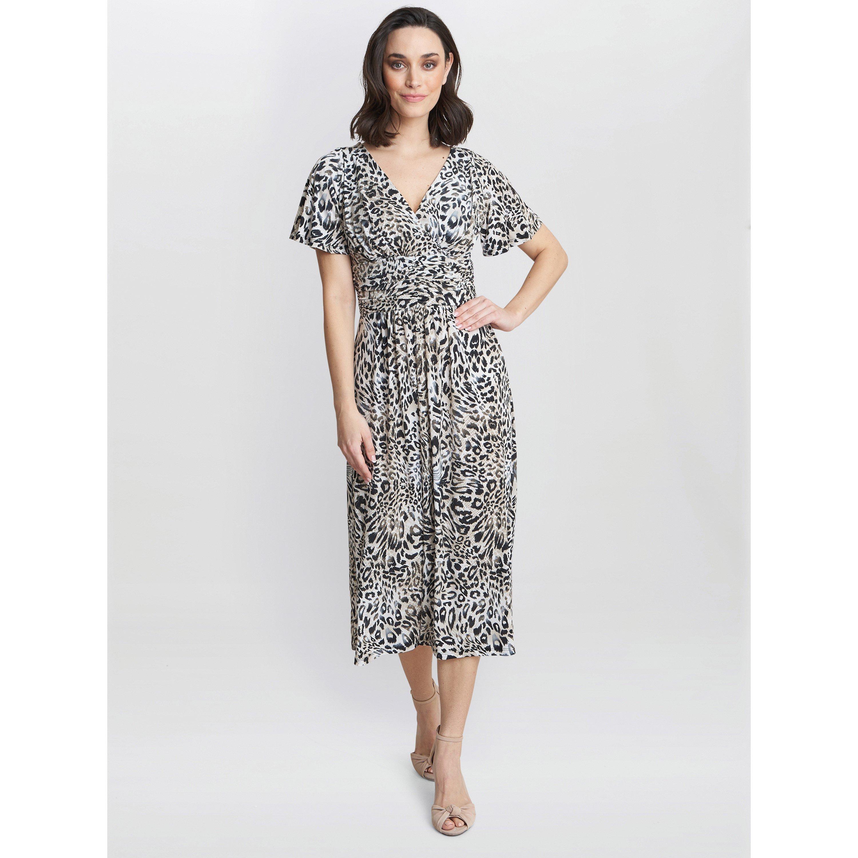 Fashioned from comfortable jersey fabric in a gorgeous print, this dress is guaranteed to make you stand out. The bodice takes an elegant wrap-over design and gathers at the waistline before giving way to a flowing midi skirt. It features a flutter sleeve and is zip-free for ease.