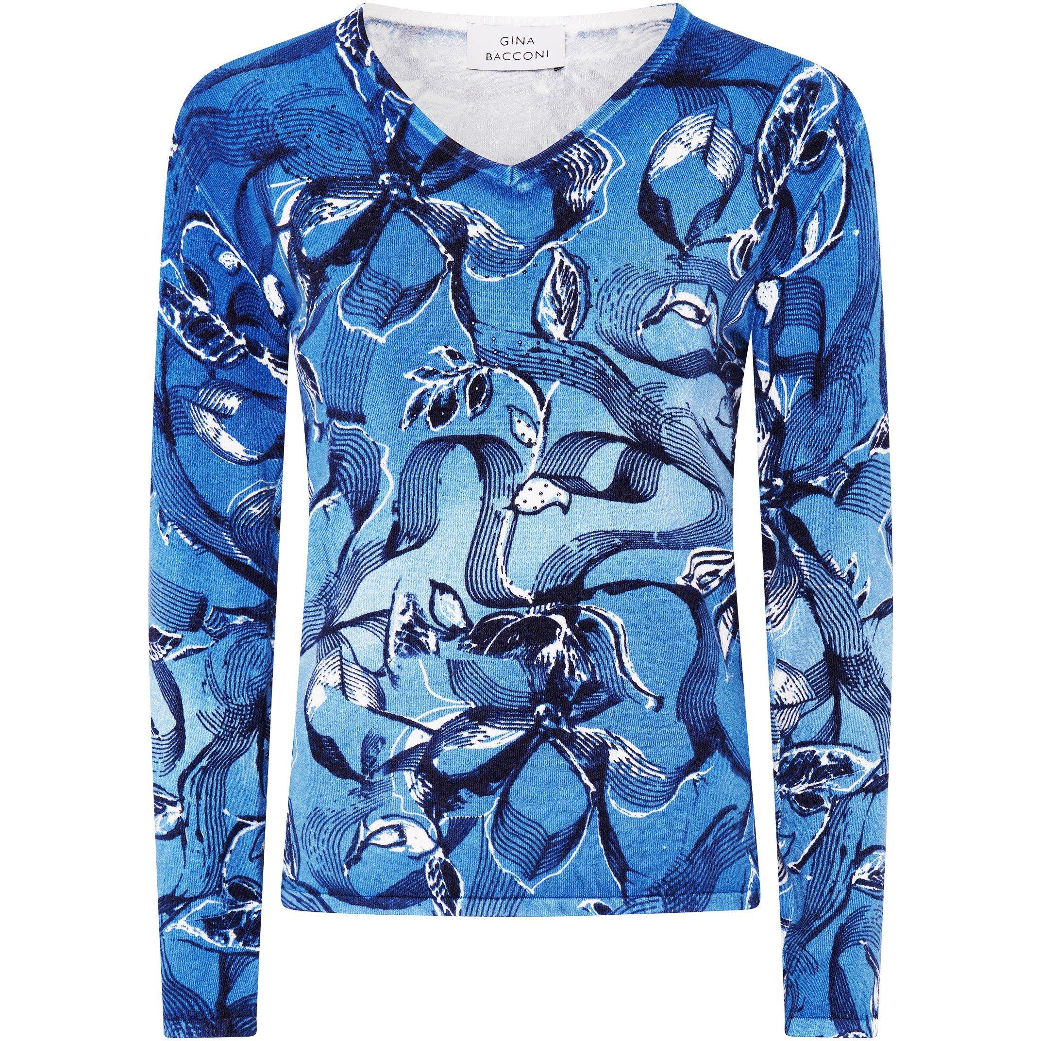 Gina Bacconi's Riya Jumper is designer knitwear with a lightweight build suitable for year-round wear. This printed jumper balances casual comfort with subtle style.