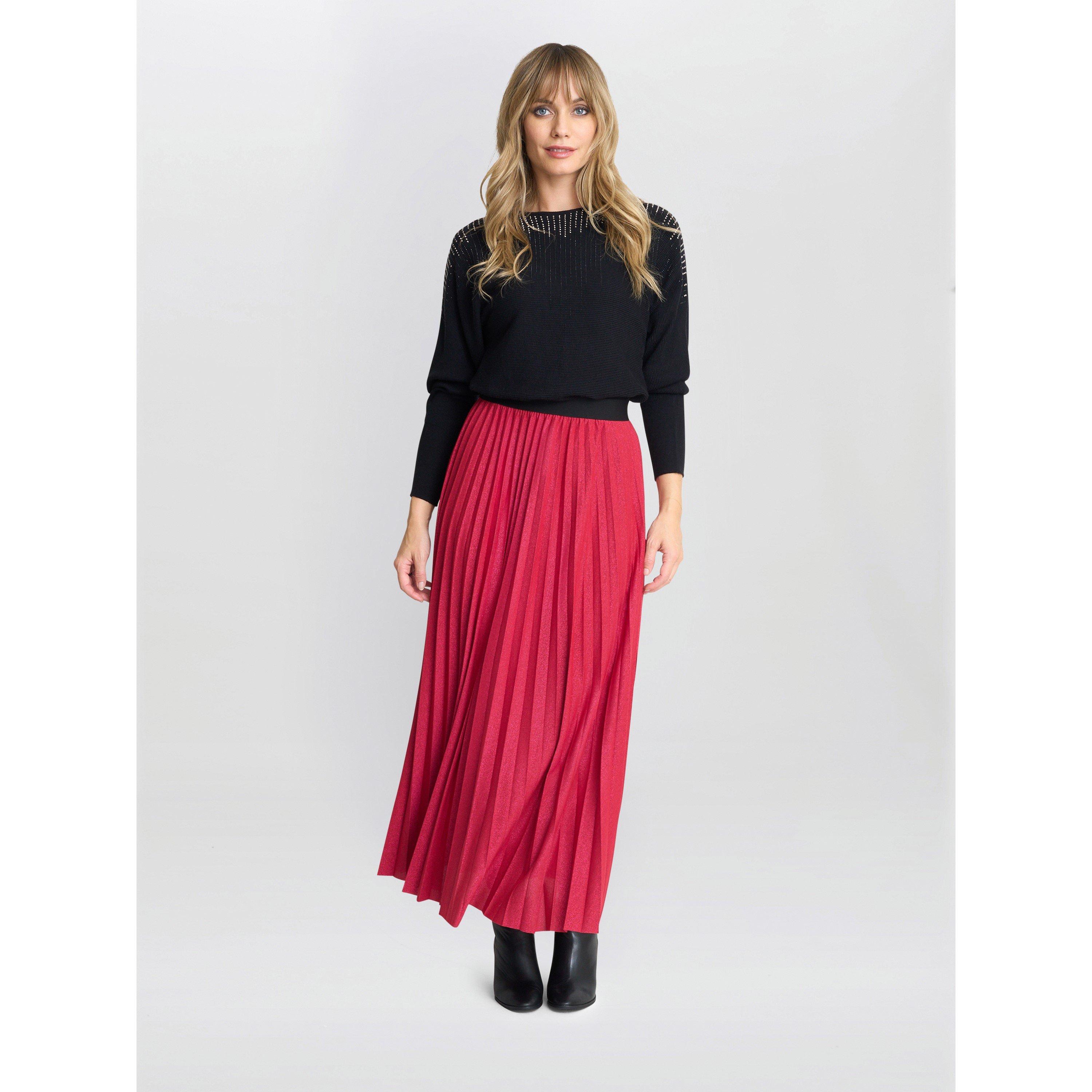 Gina Bacconi's Ismay A-Line Skirt creates movement with its pleated design. The fabric catches light, while the elastic waist provides easy pull-on styling for day-to-evening wear.